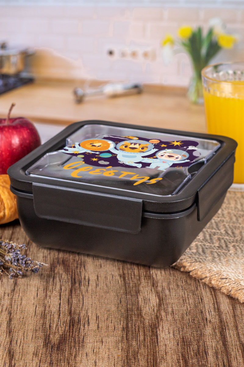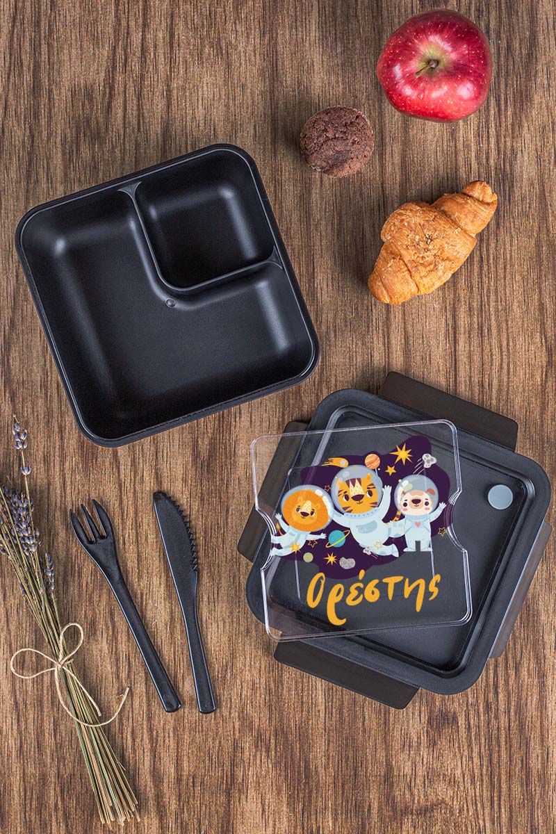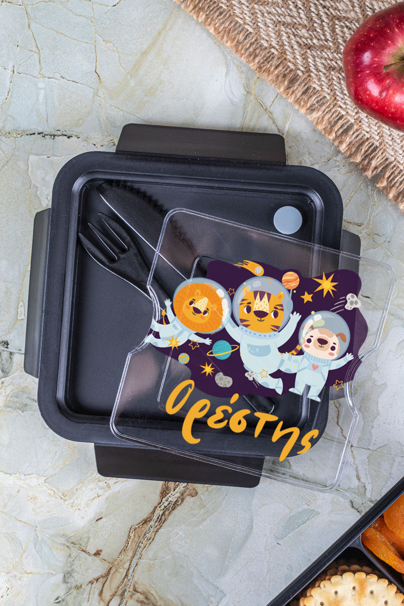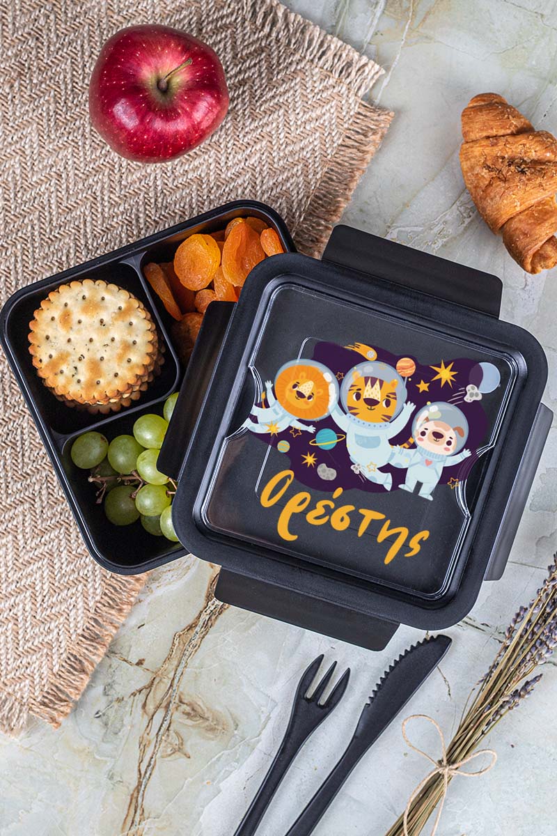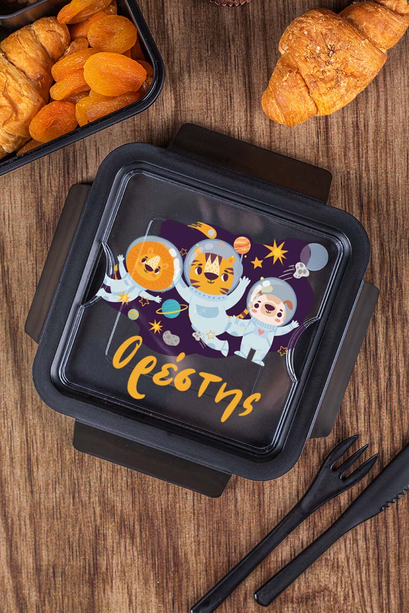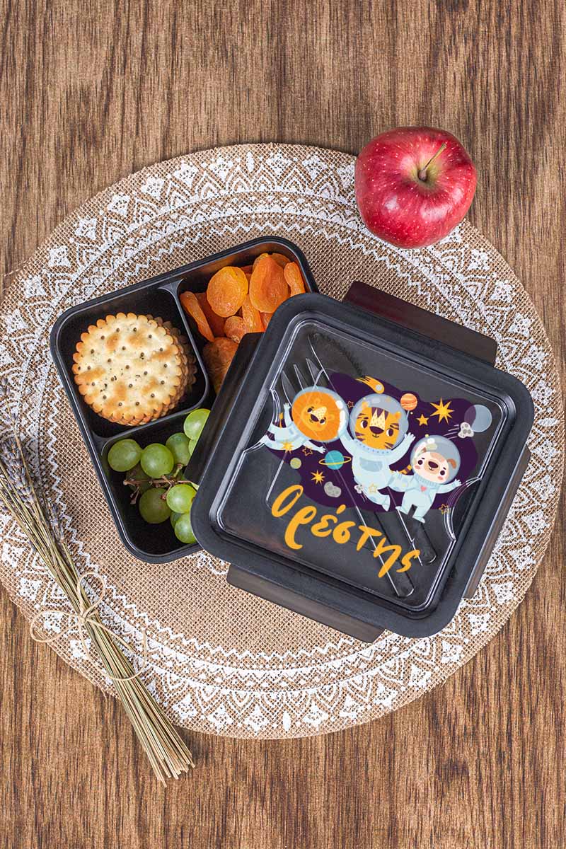 Δοχείο Φαγητού με Χώρισμα & το Όνομα του Παιδιού, Space Friends