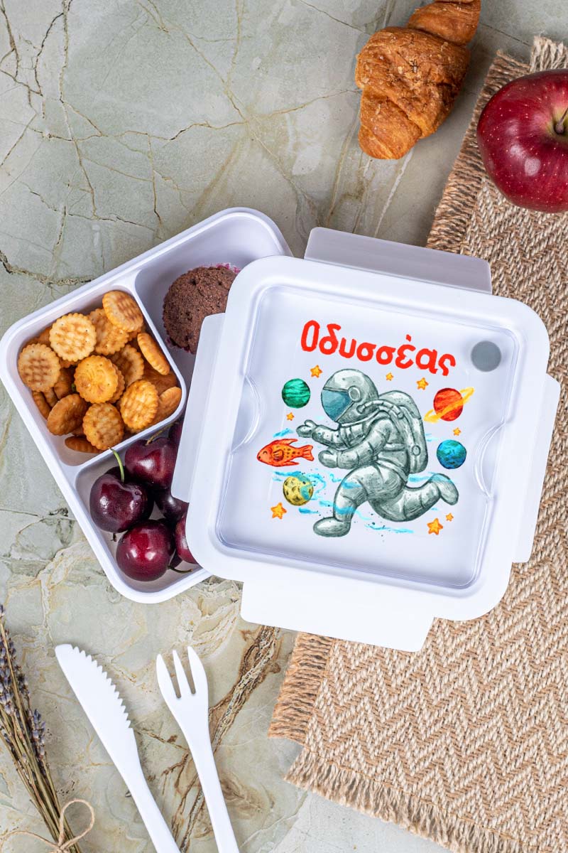 Δοχείο Φαγητού με Χώρισμα & το Όνομα του Παιδιού, Space Run