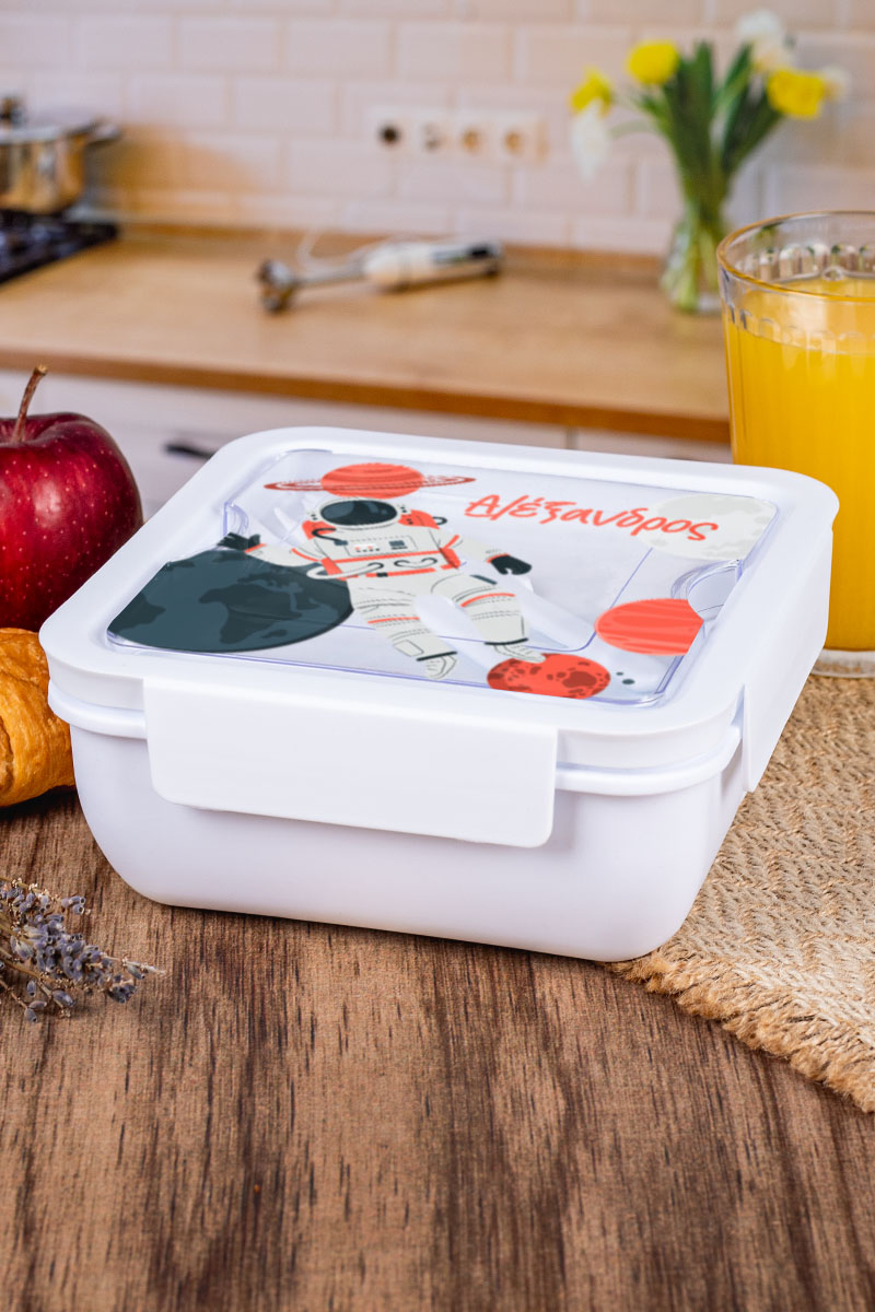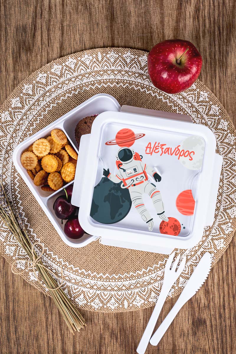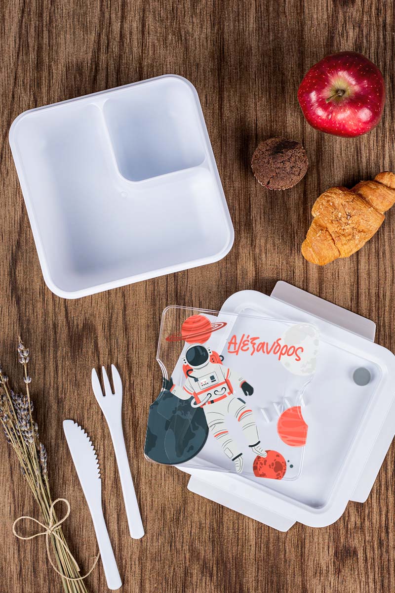 Δοχείο Φαγητού με Χώρισμα & το Όνομα του Παιδιού, Space Walk