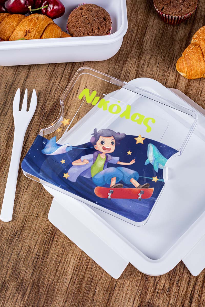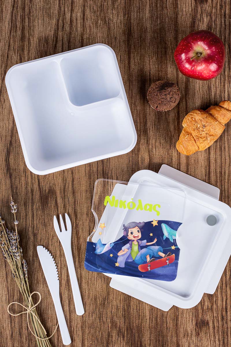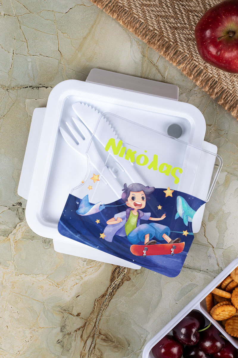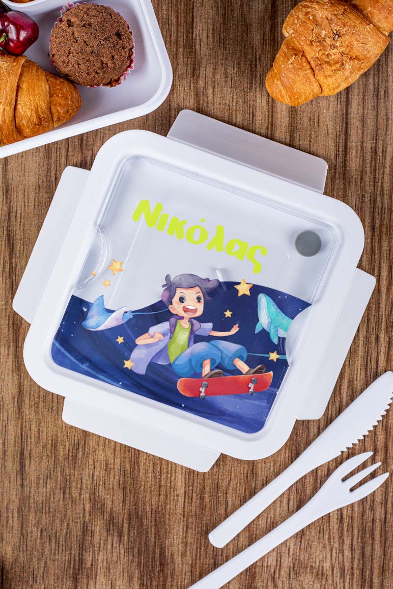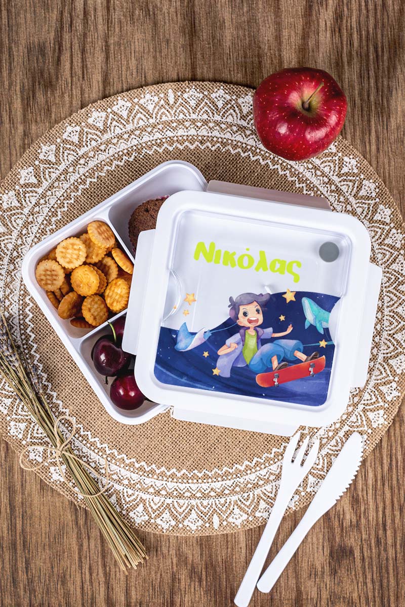 Δοχείο Φαγητού με Χώρισμα & το Όνομα του Παιδιού, Star Skater