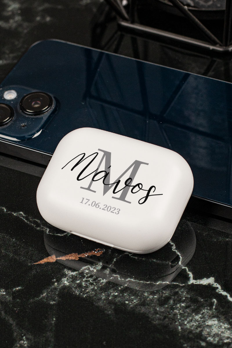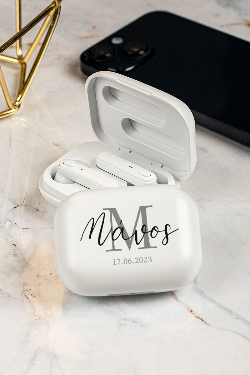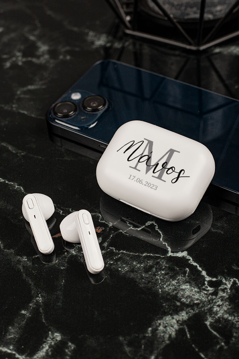 Earbud Bluetooth Handsfree Ακουστικά με Θήκη Φόρτισης & Σχέδιο Classy Monogram