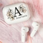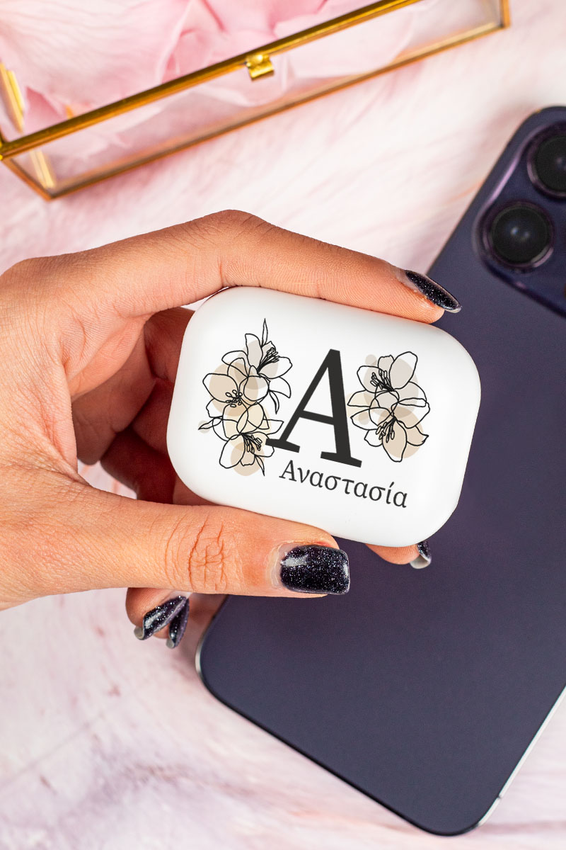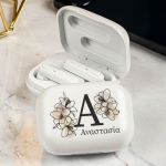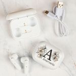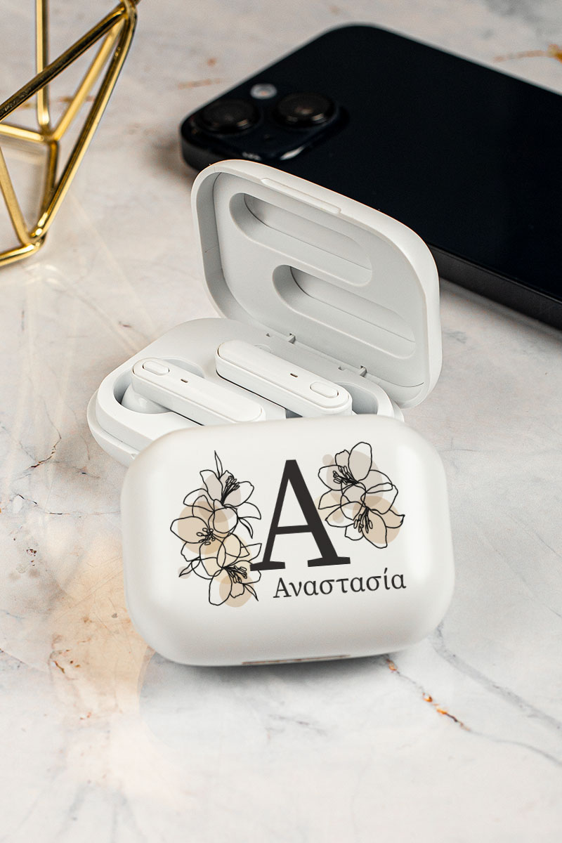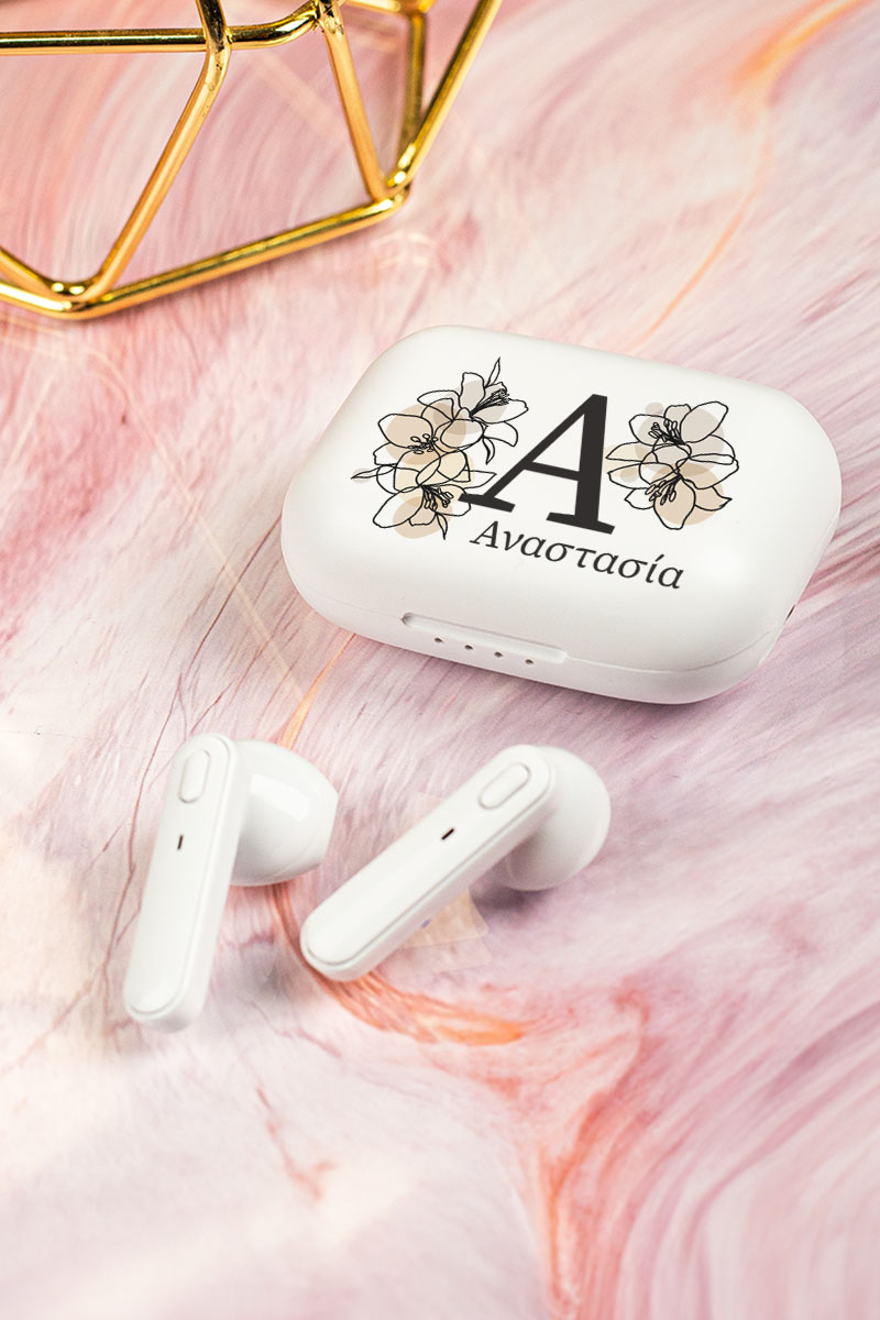 Earbud Bluetooth Handsfree Ακουστικά με Θήκη Φόρτισης & Σχέδιο Floral Monogram