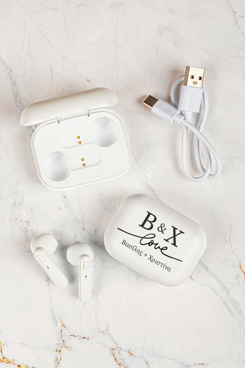 Earbud Bluetooth Handsfree Ακουστικά με Θήκη Φόρτισης & Σχέδιο Love Sign