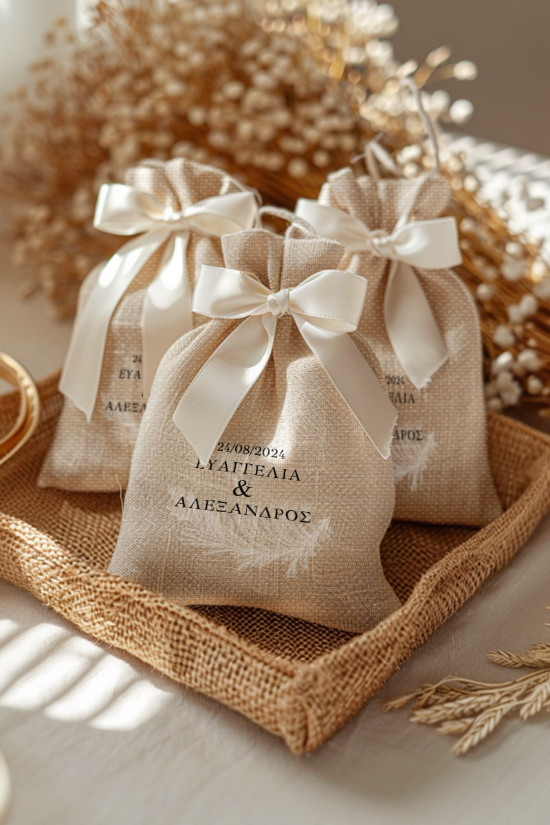 1.59€Μοντέρνες και Πρωτότυπες Μπομπονιέρες Γάμου με Πουγκί από Καμβά | Σετ Πουγκί, Εσωτερικό Τούλι & Κορδέλα Σατέν | Premium ποιότητα