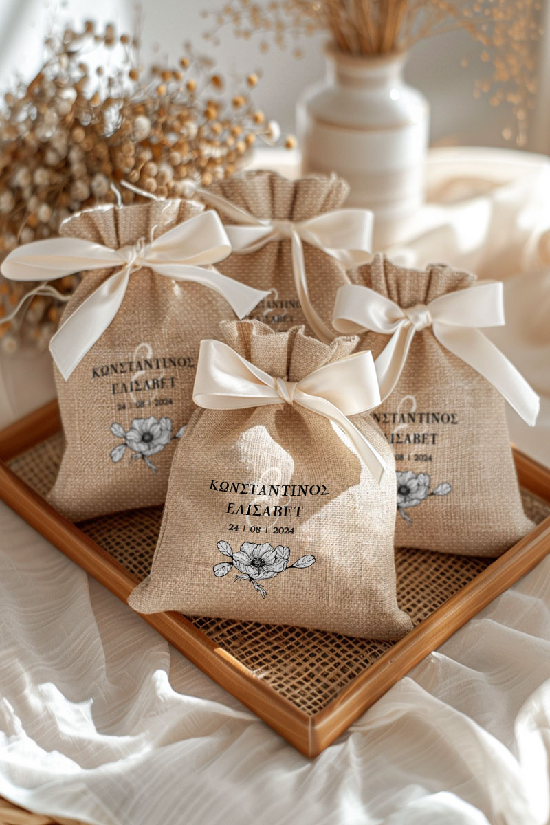 1.59€Μοντέρνες και Πρωτότυπες Μπομπονιέρες Γάμου με Πουγκί από Καμβά | Σετ Πουγκί, Εσωτερικό Τούλι & Κορδέλα Σατέν | Premium ποιότητα