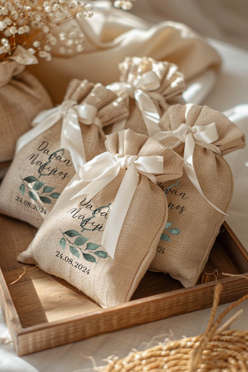1.59€Μοντέρνες και Πρωτότυπες Μπομπονιέρες Γάμου με Πουγκί από Καμβά | Σετ Πουγκί, Εσωτερικό Τούλι & Κορδέλα Σατέν | Premium ποιότητα