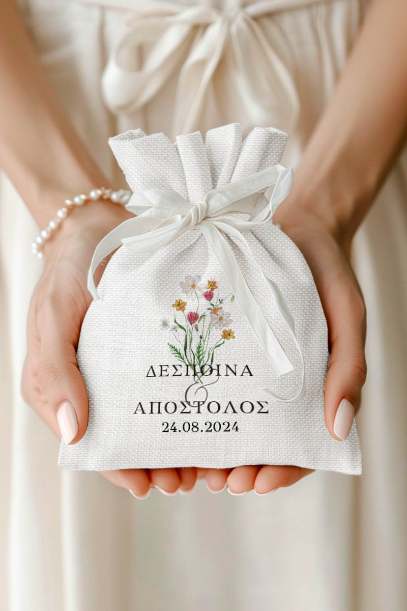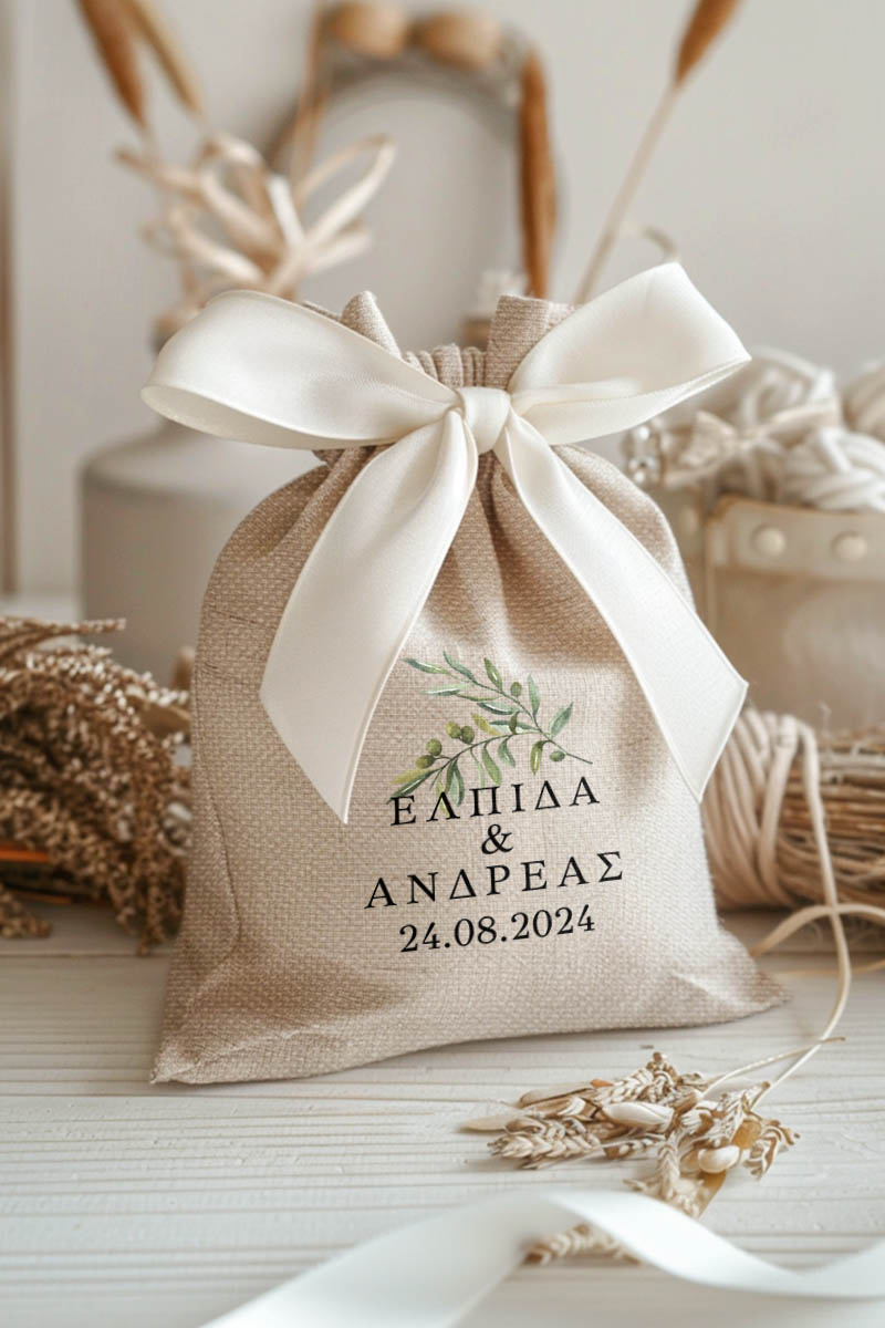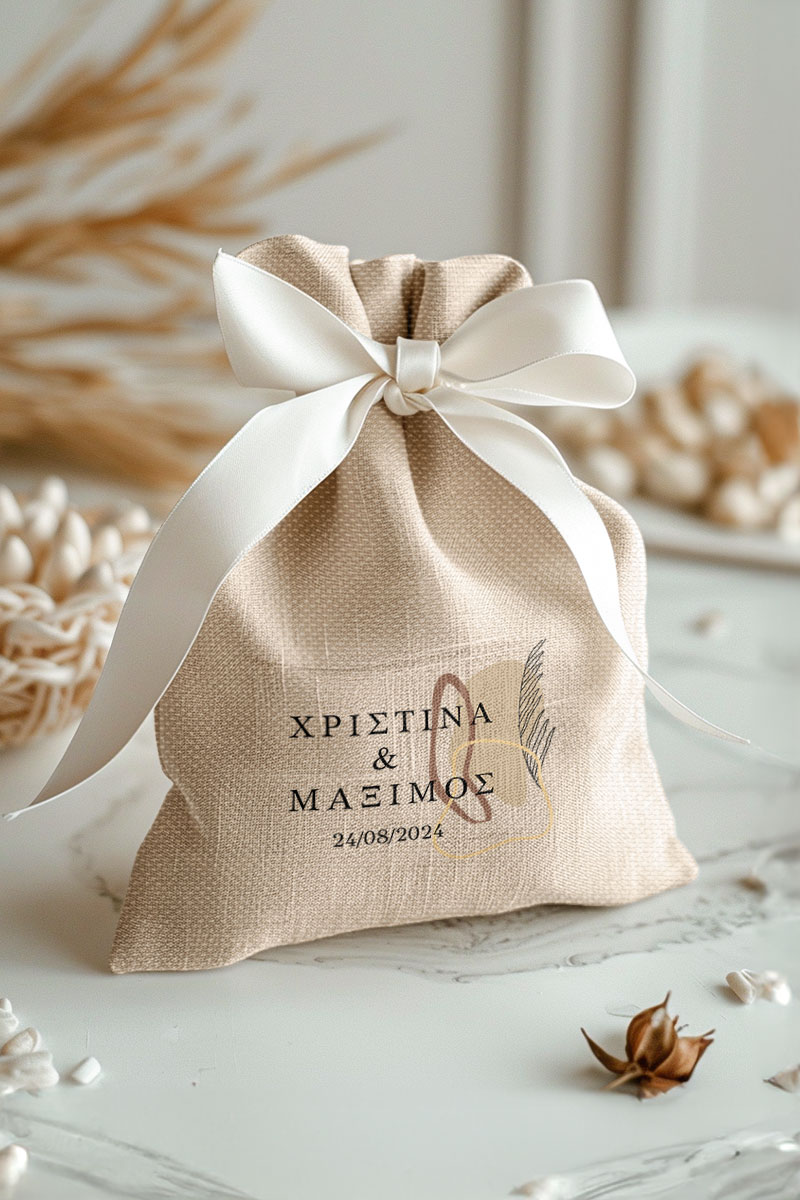 1.59€Μοντέρνες και Πρωτότυπες Μπομπονιέρες Γάμου και Βάπτισης με Πουγκί από Καμβά | Σετ Πουγκί, Εσωτερικό Τούλι & Κορδέλα Σατέν | Premium ποιότητα
