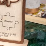 Ξύλινο επιτραπέζιο διακοσμητικό με εκτύπωση ή χάραξη.