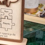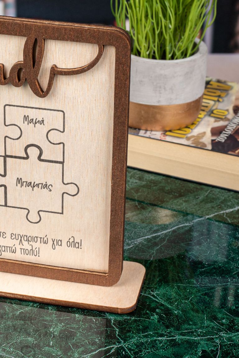 Ξύλινο επιτραπέζιο διακοσμητικό με εκτύπωση ή χάραξη.