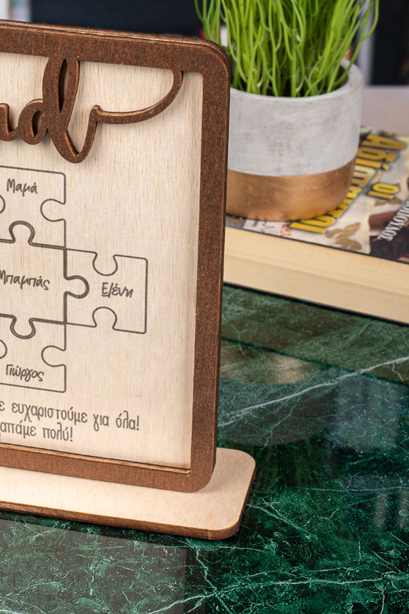 Ξύλινο επιτραπέζιο διακοσμητικό με εκτύπωση ή χάραξη.