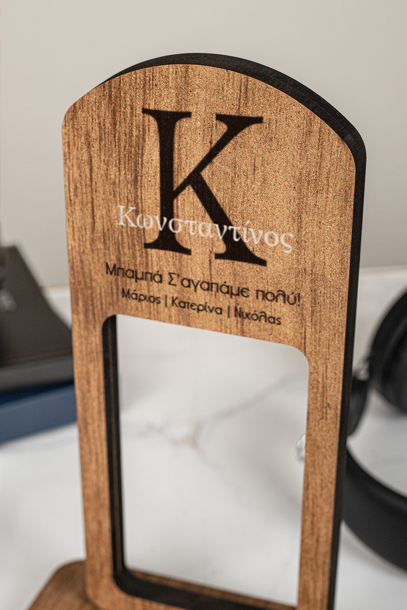 Ξύλινο επιτραπέζιο διακοσμητικό με προσωποποίηση.