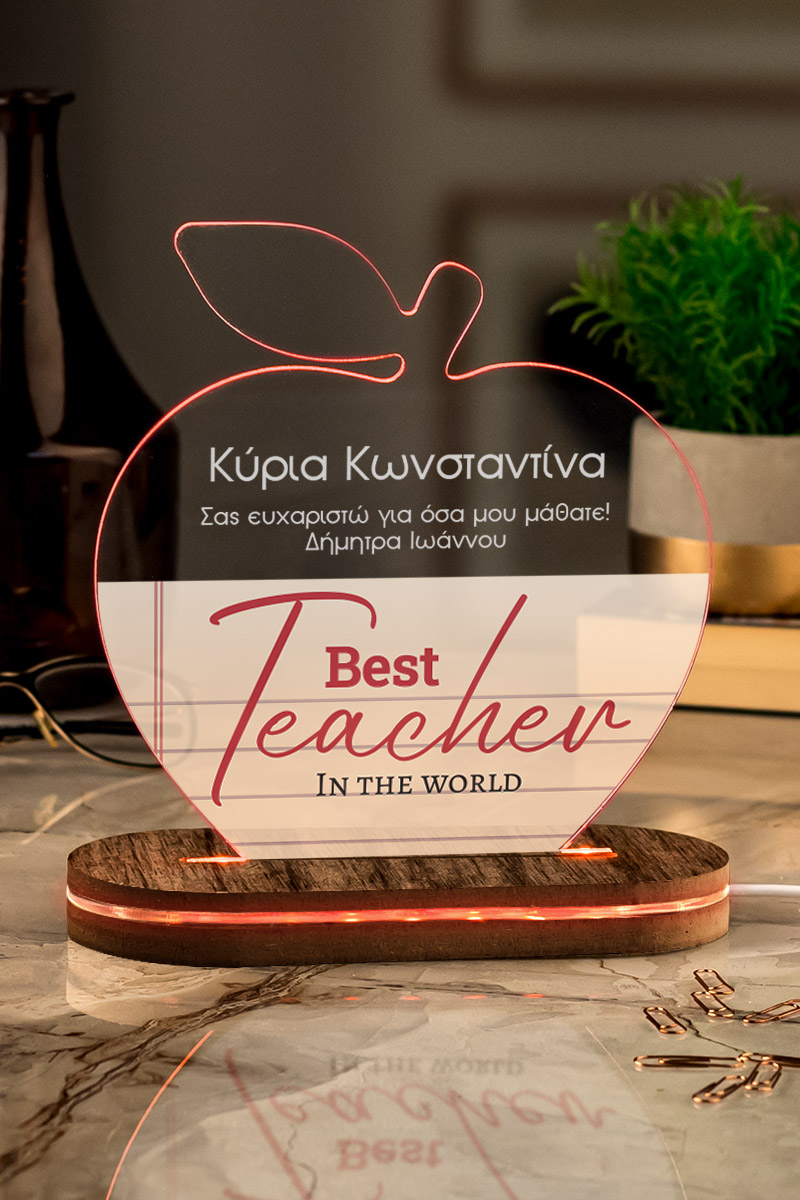 Επιτραπέζιο Φωτιστικό Led, Δώρο για Δασκάλα, Apple Teacher