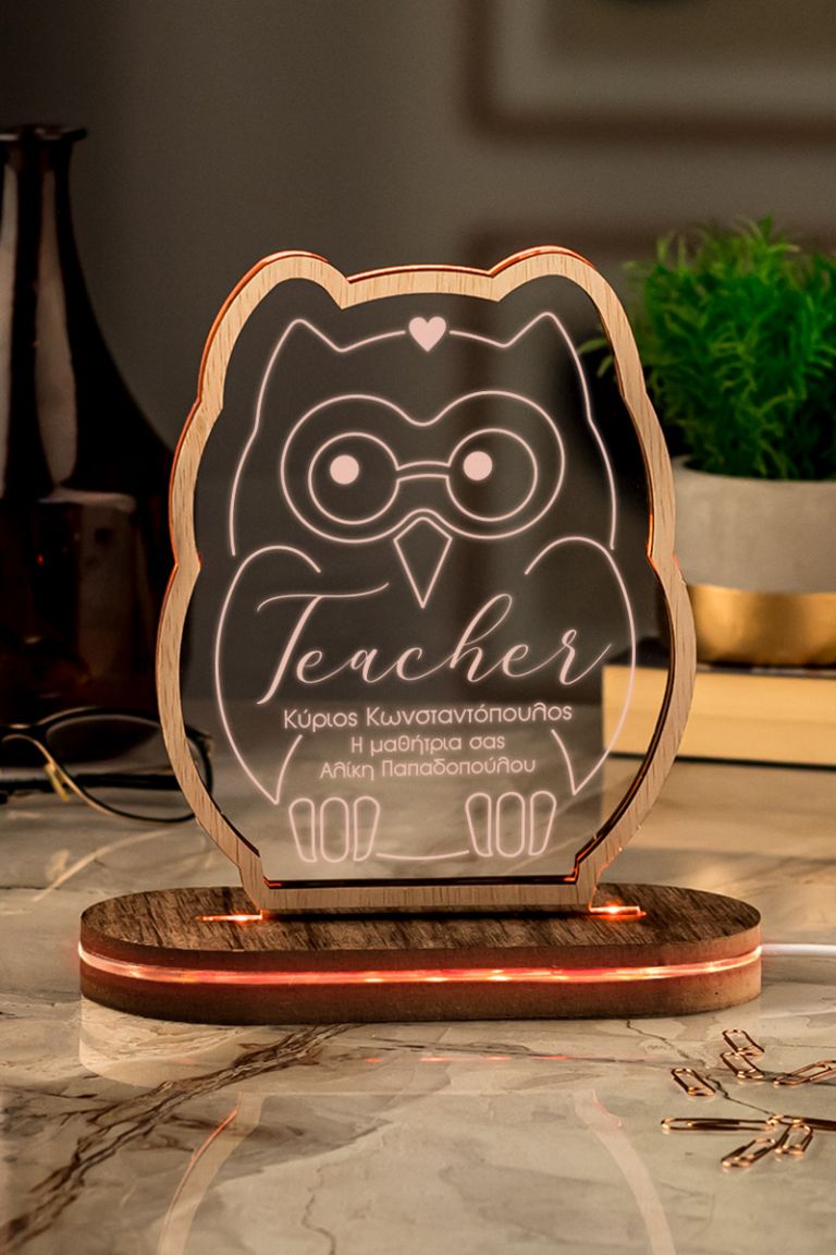 Επιτραπέζιο Φωτιστικό Led, Δώρο για Δάσκαλο, Owl Teacher