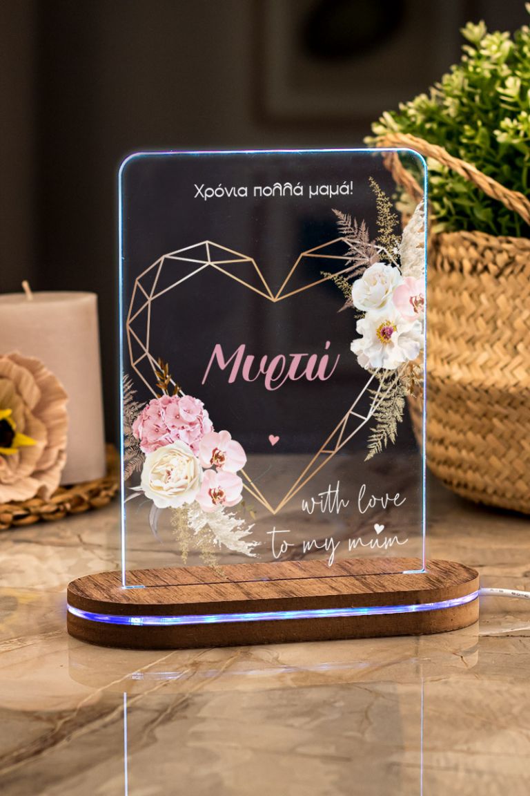 Επιτραπέζιο Φωτιστικό Led, Δώρο για Μητέρα, Flower Heart