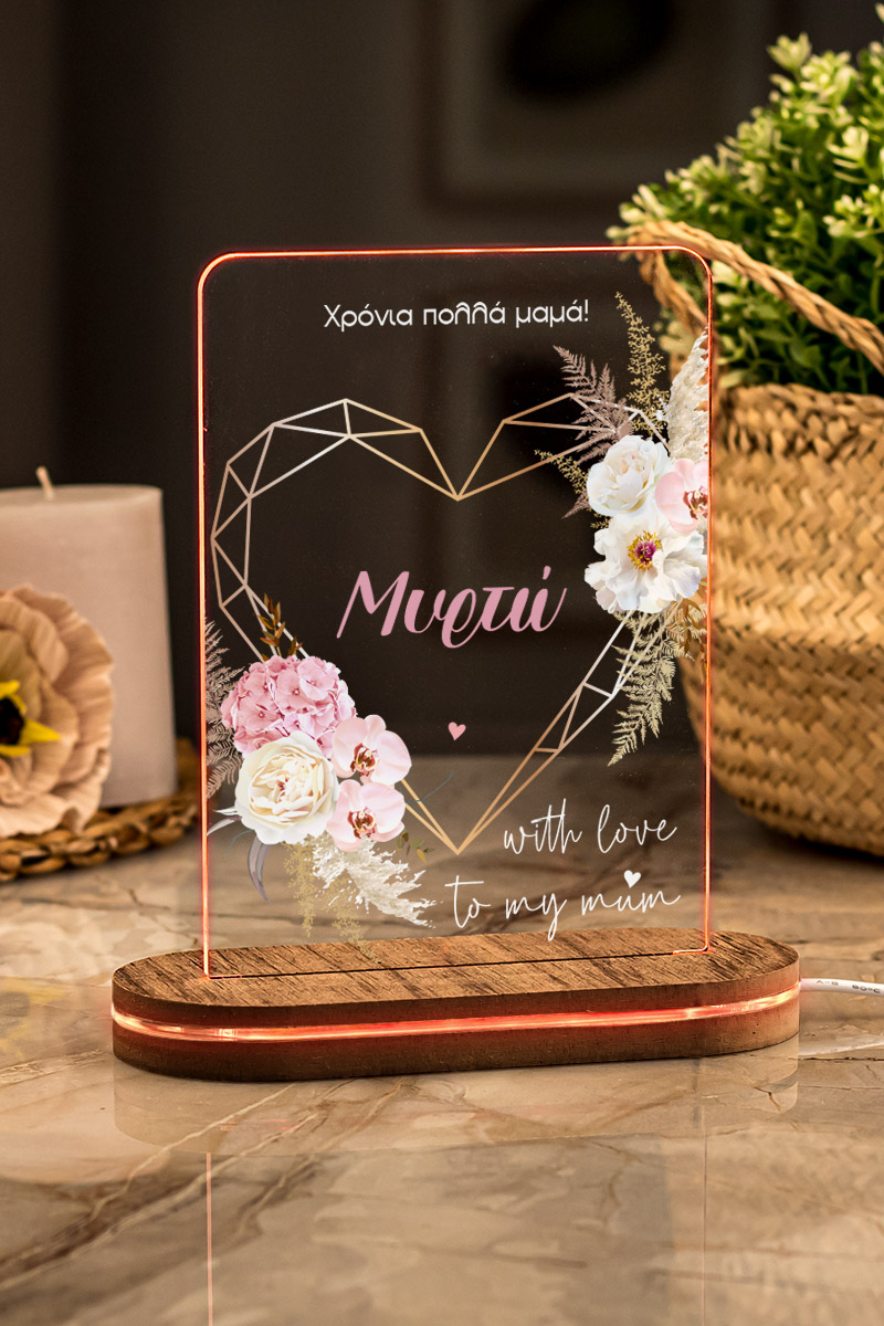 Επιτραπέζιο Φωτιστικό Led, Δώρο για Μητέρα, Flower Heart