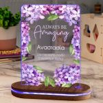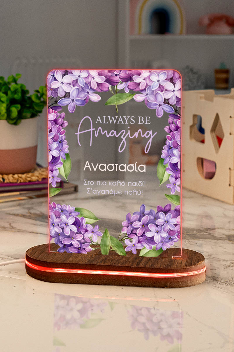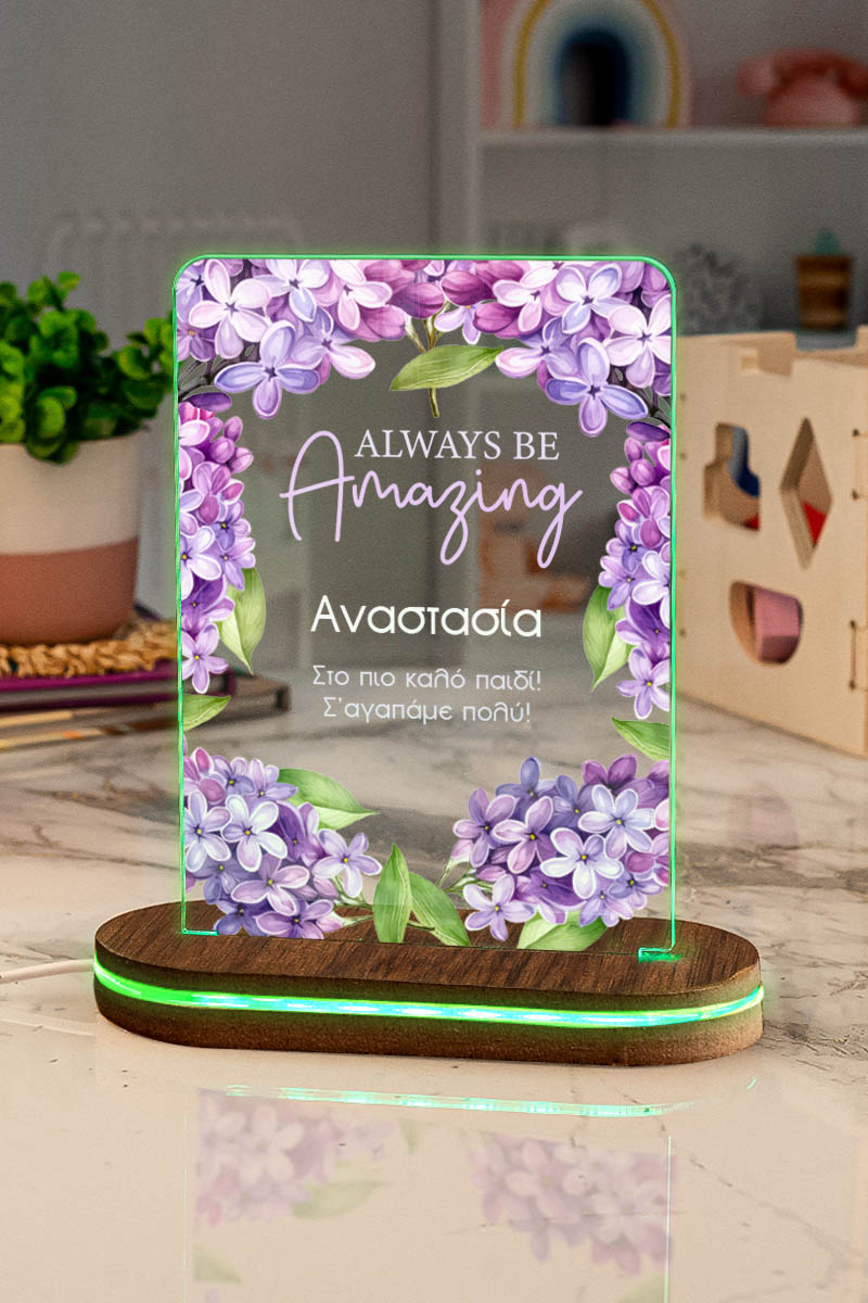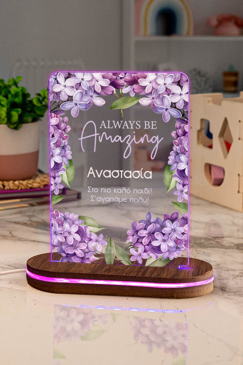 Premium φωτιστικό Led με επιλογή 7 χρωμάτων, προσωποποίηση και σχέδιο Μωβ Λουλούδια. Χάρισε ένα μοναδικό δώρο που θα λατρέψει κάθε παιδί!