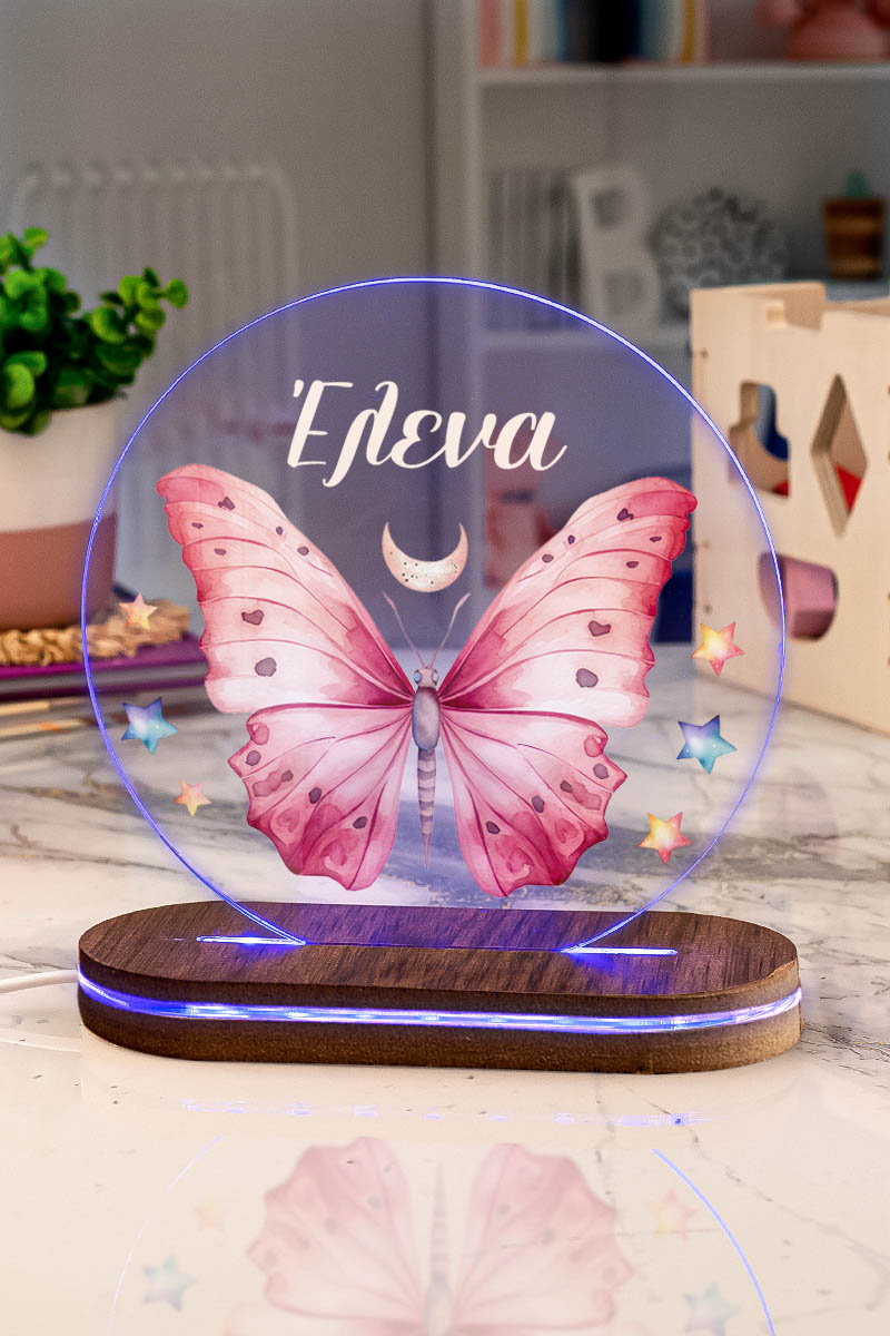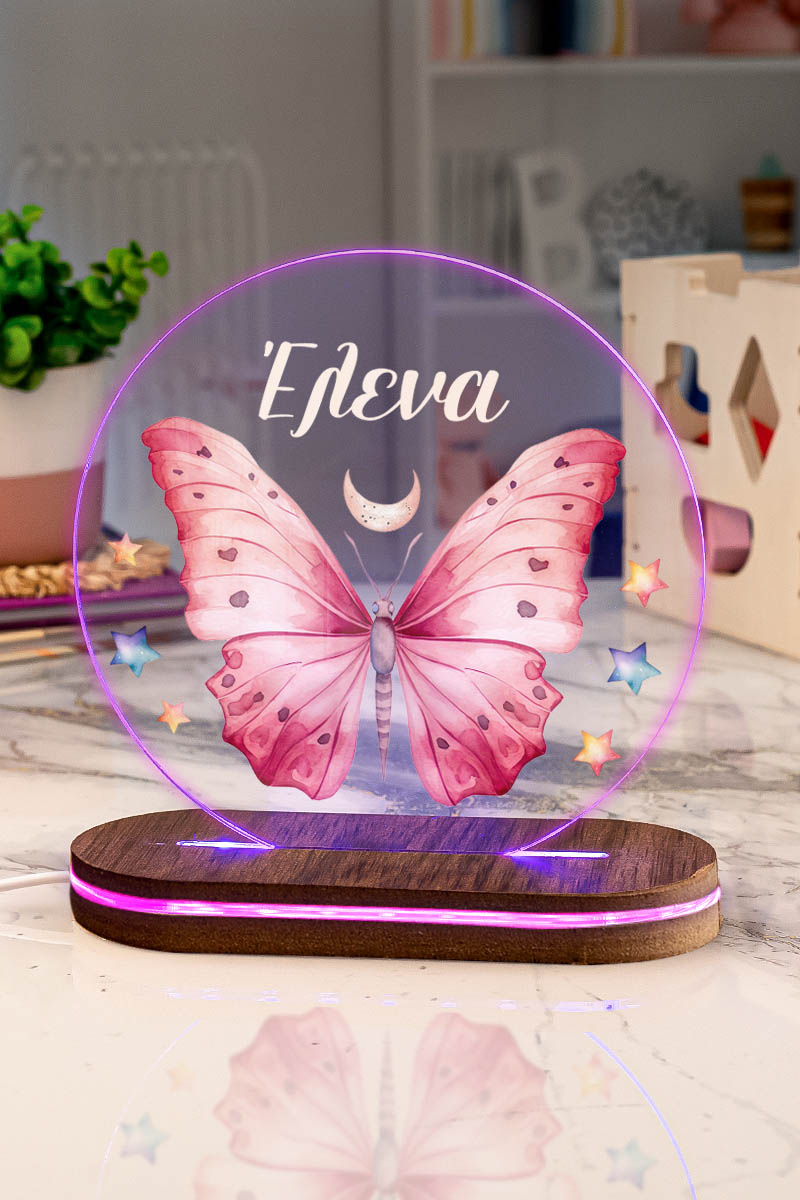 Premium φωτιστικό Led με επιλογή 7 χρωμάτων, προσωποποίηση και σχέδιο Πεταλούδα. Χάρισε ένα μοναδικό δώρο που θα λατρέψει κάθε παιδί!