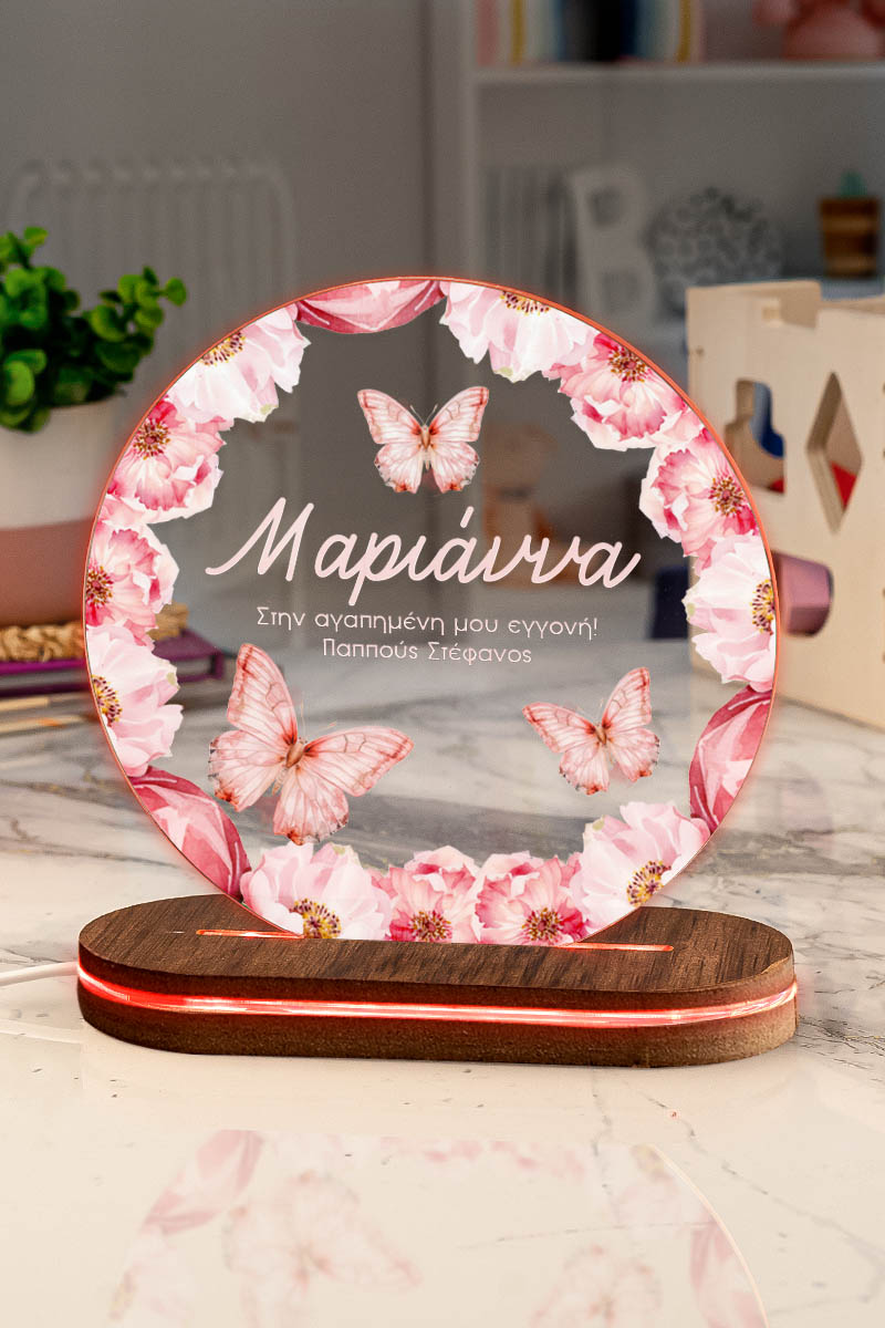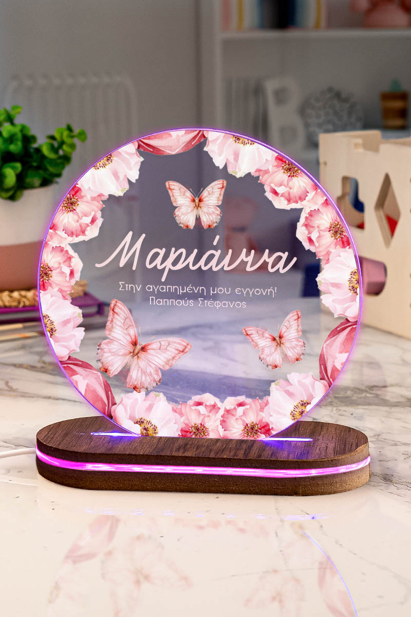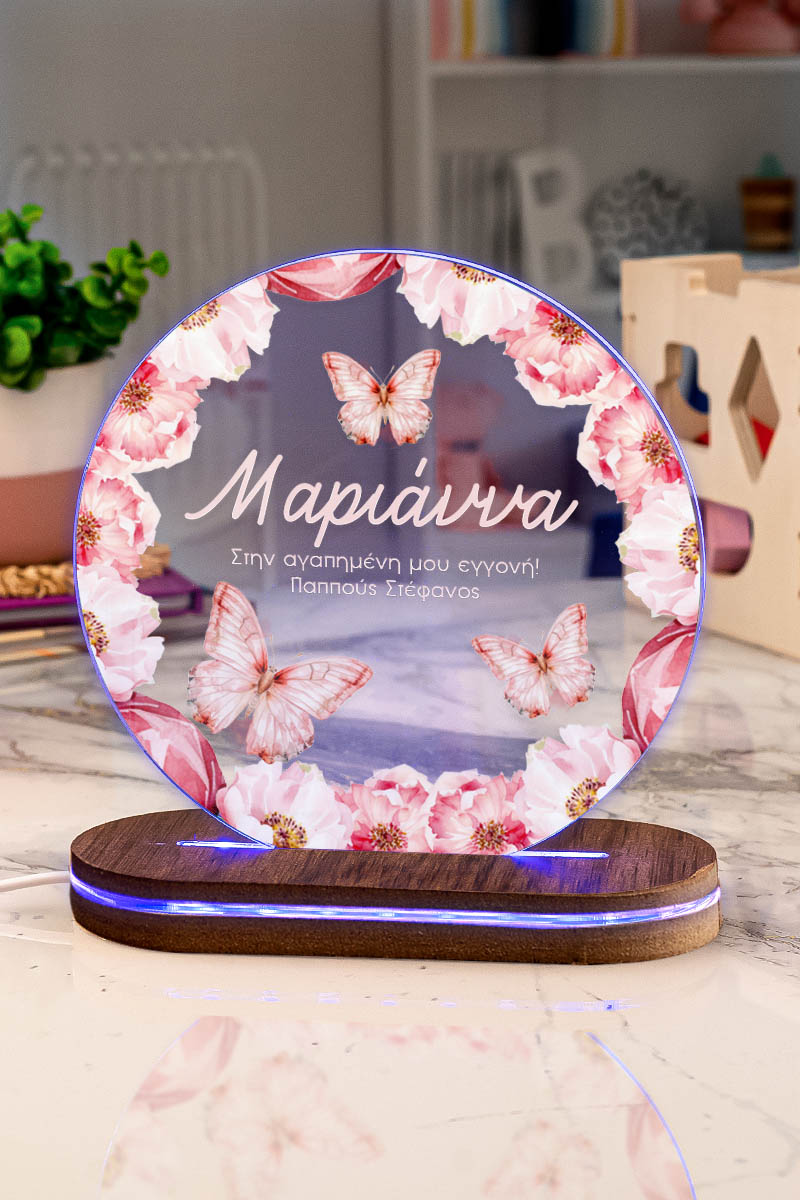 Premium φωτιστικό Led με επιλογή 7 χρωμάτων, προσωποποίηση και σχέδιο Πεταλούδα Και Λουλούδια. Χάρισε ένα μοναδικό δώρο που θα λατρέψει κάθε παιδί!