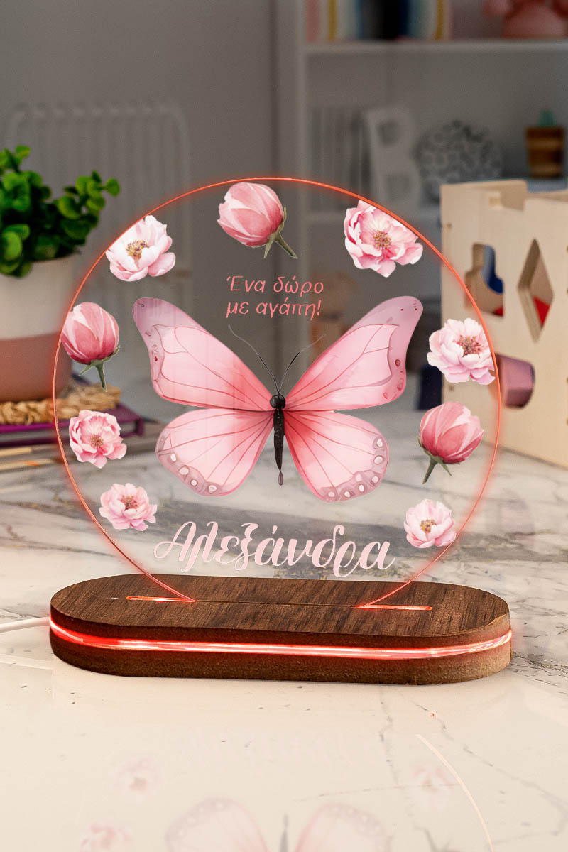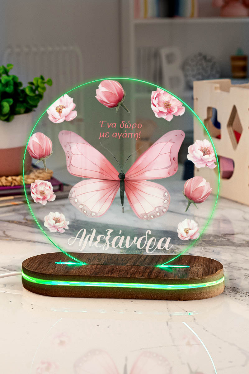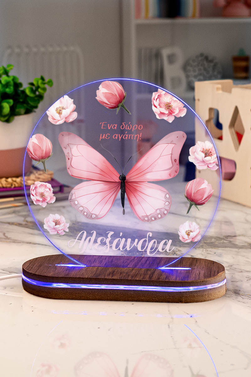 Premium φωτιστικό Led με επιλογή 7 χρωμάτων, προσωποποίηση και σχέδιο Πεταλούδα Και Λουλούδια. Χάρισε ένα μοναδικό δώρο που θα λατρέψει κάθε παιδί!