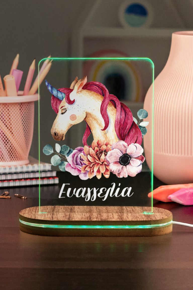 Επιτραπέζιο Φωτιστικό για Παιδικό Δωμάτιο, Unicorn Flower
