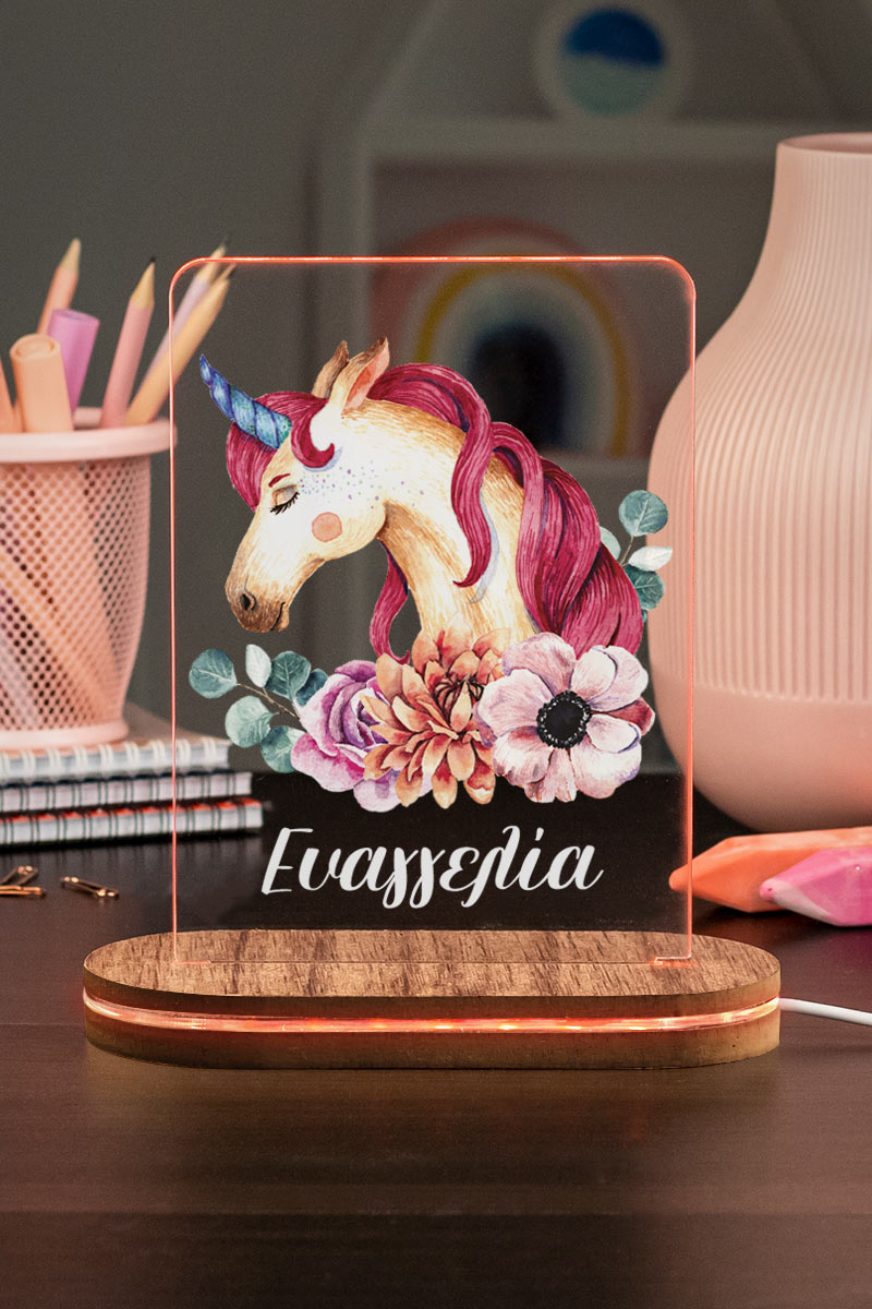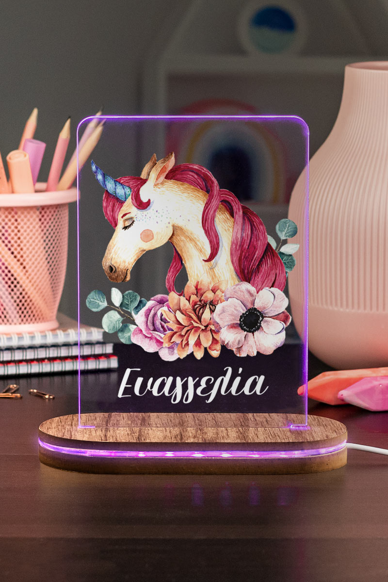 Επιτραπέζιο Φωτιστικό για Παιδικό Δωμάτιο, Unicorn Flower