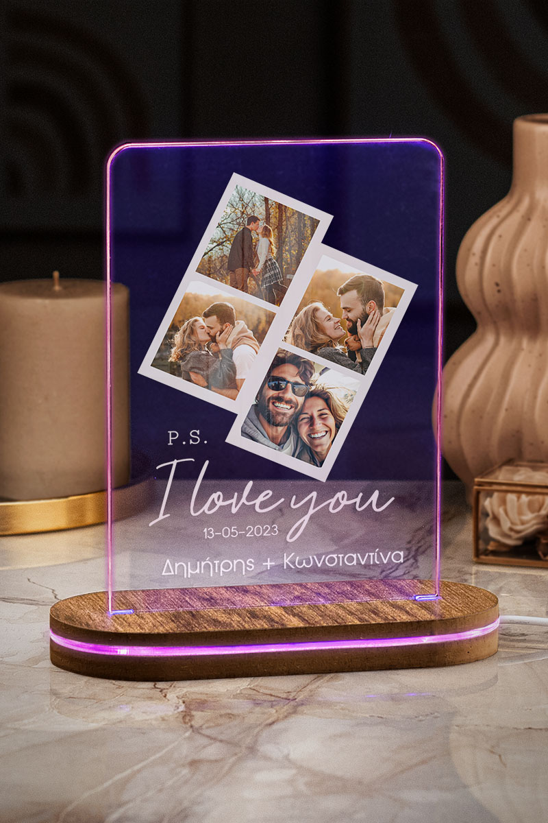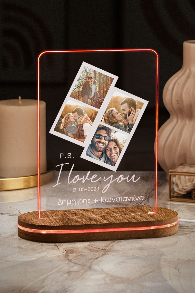 Φωτιστικο Led Προσωποποιημένο με Σχέδιο PS I Love You