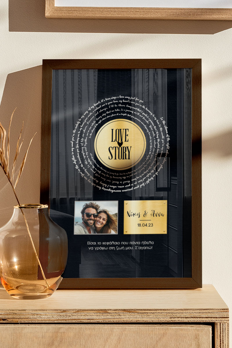 Κορνίζα με Φωτογραφίες, Δώρο για Ζευγάρι, Gold Love Story