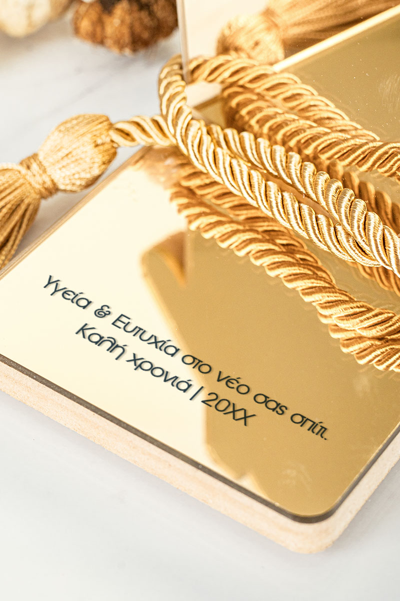 Υλικό: Χρυσός, ακρυλικός καθρέφτης, mdf & χρυσή φούντα.