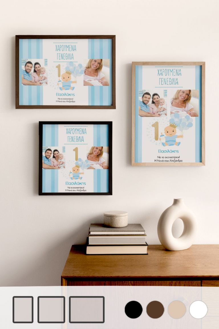 Κάνουμε πιο εύκολο από ποτέ τον τρόπο με τον οποίο μπορείτε να δημιουργήσετε online τα δικά σας έργα τέχνης. Προσθέστε στις κορνίζες σας μονογράμματα, κείμενα, λεζάντες και πολλά άλλα. Σε λίγα λεπτά, μπορείτε να παραγγείλετε ένα έργο τέχνης που θα μετατρέψει έναν συνηθισμένο τοίχο στο σημείο εστίασης οποιουδήποτε δωματίου. Μπορείτε να δημιουργήσετε κορνίζες με τις καθημερινές σας στιγμές, το Γάμο σας, τη Βάπτιση του παιδιού σας, τα ταξίδια σας, τις διακοπές σας, τις σημαντικές στιγμές σας και πολλά άλλα.