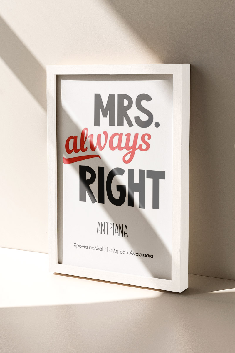 Κορνίζα με Φωτογραφίες, Mrs Always Right