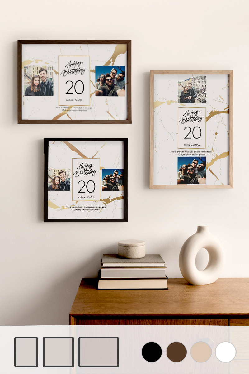Κάνουμε πιο εύκολο από ποτέ τον τρόπο με τον οποίο μπορείτε να δημιουργήσετε online τα δικά σας έργα τέχνης. Προσθέστε στις κορνίζες σας μονογράμματα, κείμενα, λεζάντες και πολλά άλλα. Σε λίγα λεπτά, μπορείτε να παραγγείλετε ένα έργο τέχνης που θα μετατρέψει έναν συνηθισμένο τοίχο στο σημείο εστίασης οποιουδήποτε δωματίου. Μπορείτε να δημιουργήσετε κορνίζες με τις καθημερινές σας στιγμές, το Γάμο σας, τη Βάπτιση του παιδιού σας, τα ταξίδια σας, τις διακοπές σας, τις σημαντικές στιγμές σας και πολλά άλλα.