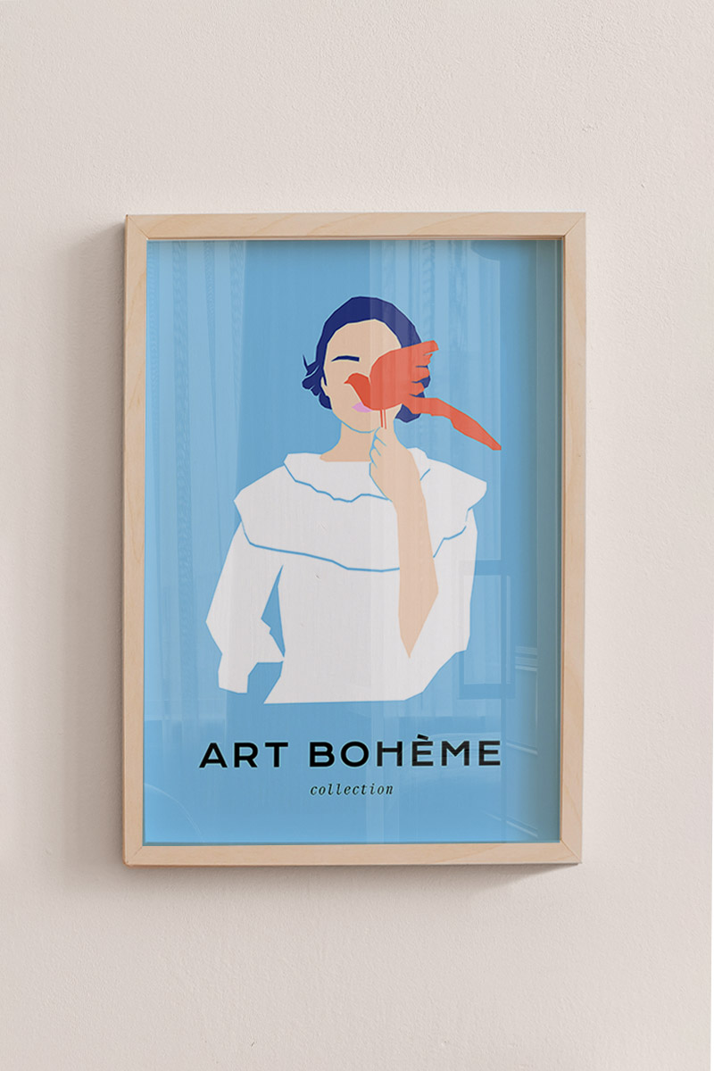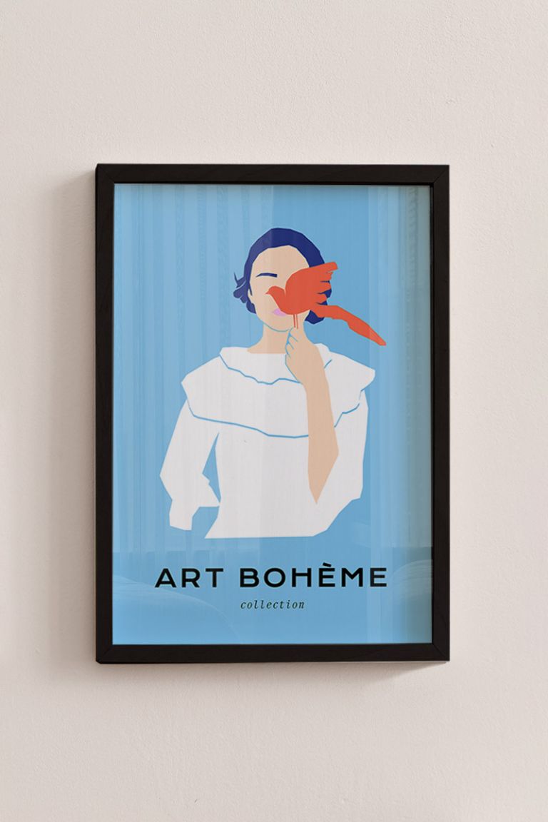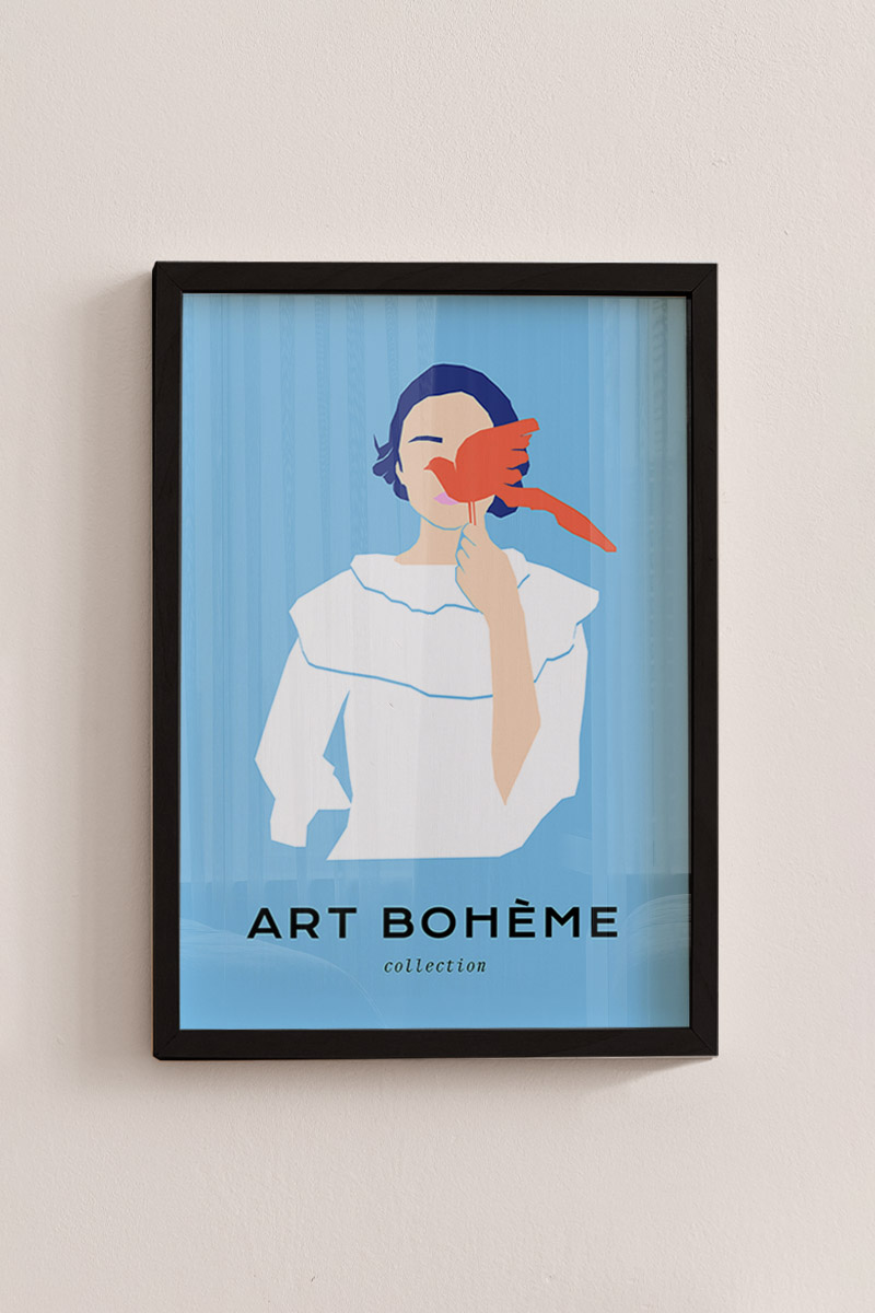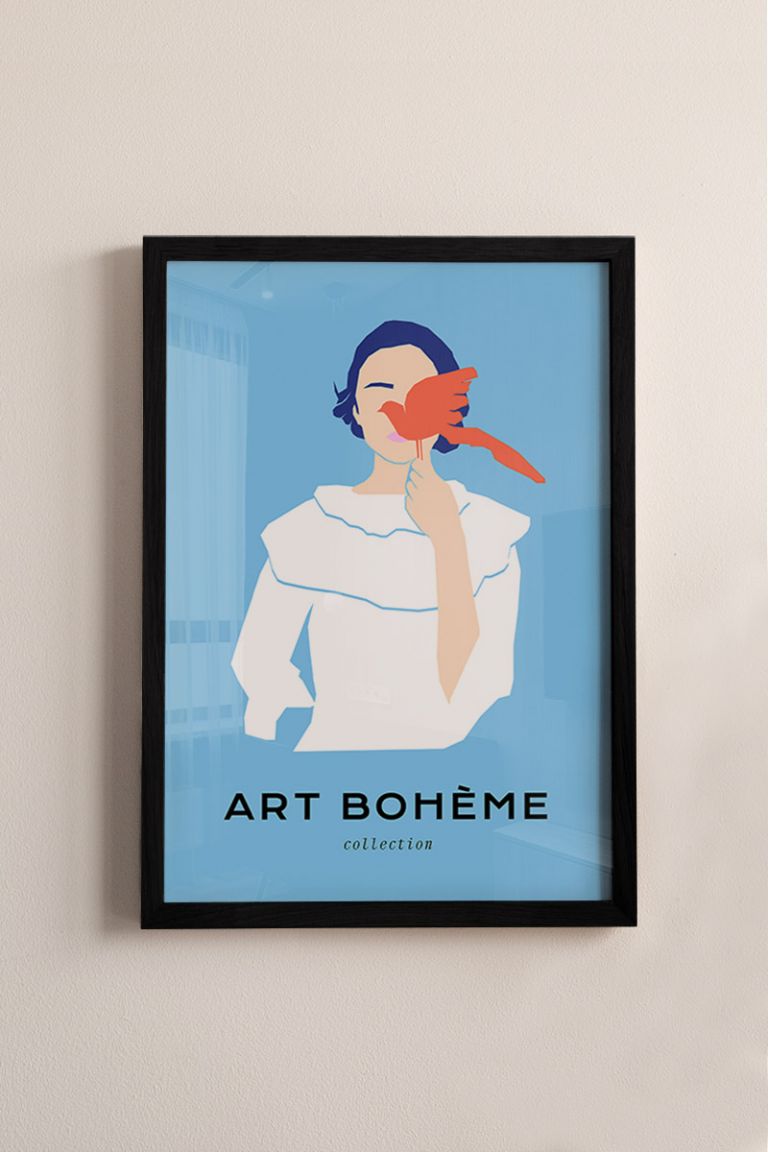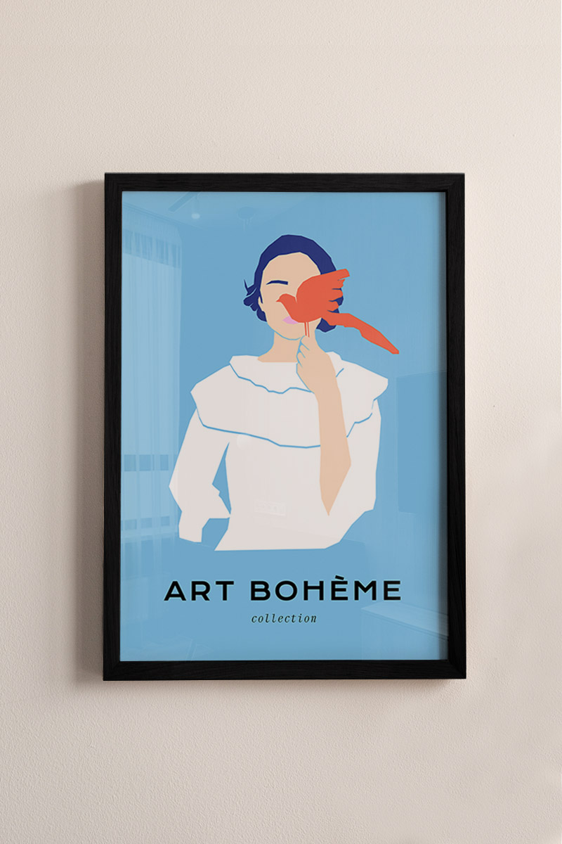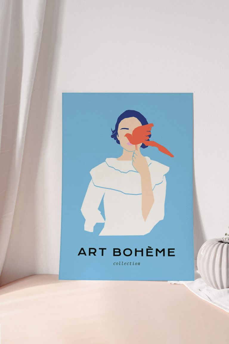 Girl With Bird No1 Premium Poster