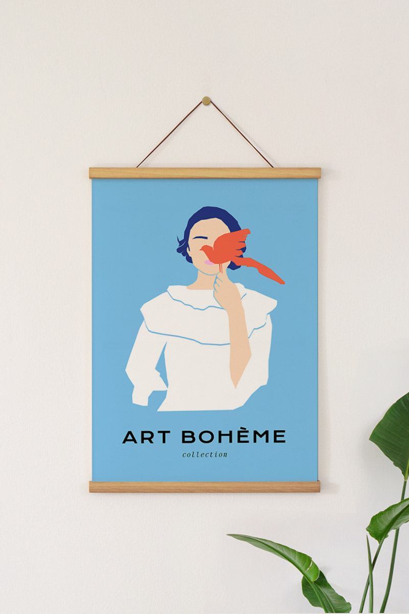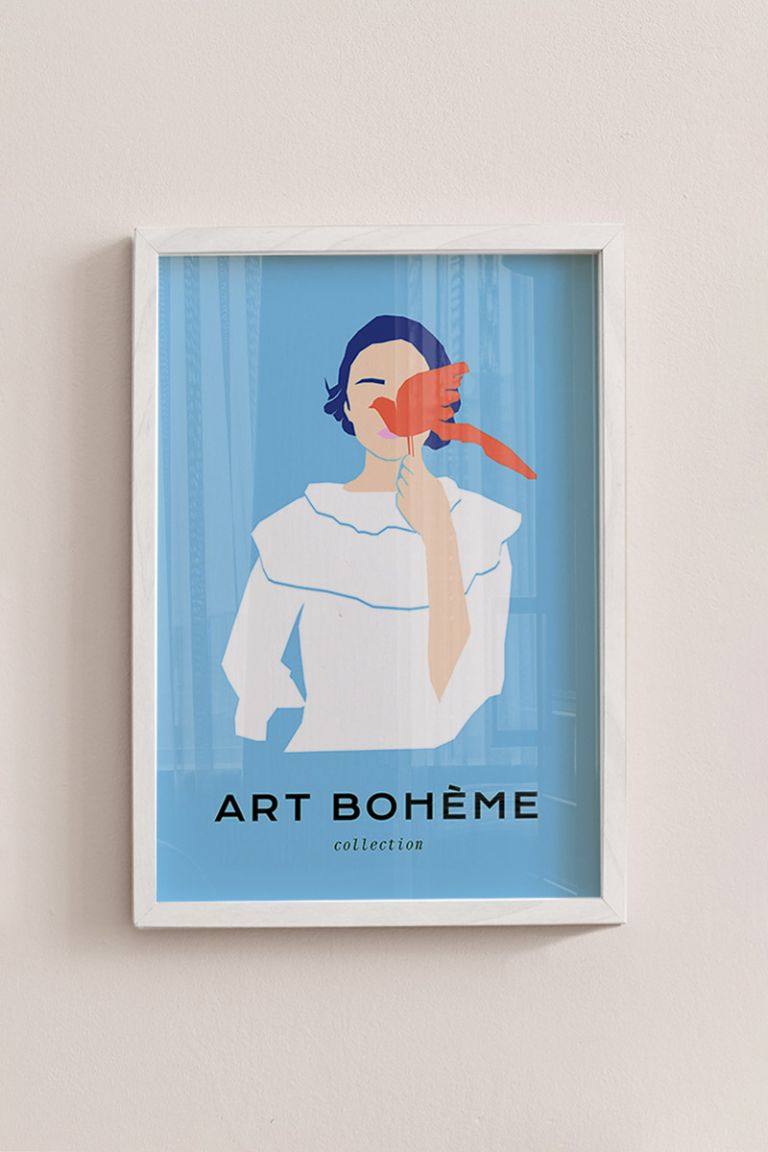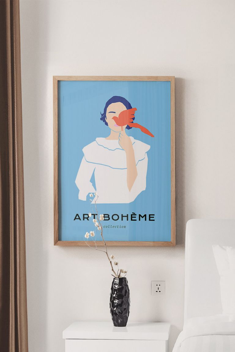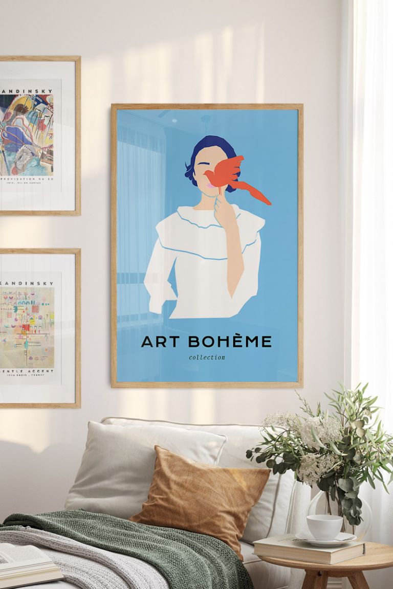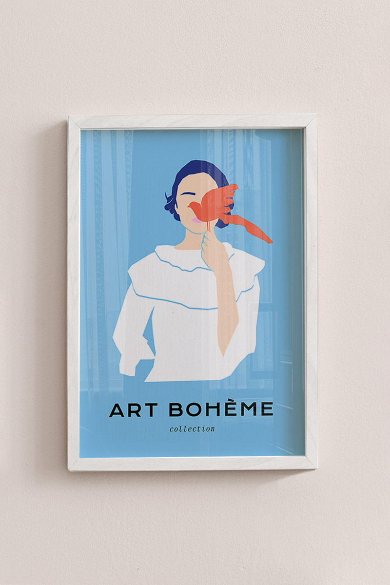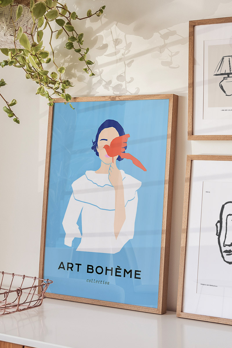 Girl With Bird No1 Premium Poster