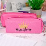 Σχολική Κασετίνα με Όνομα, σε Φούξια Χρώμα & Σχέδιο Glitter Princess