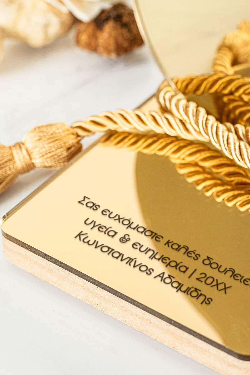 Υλικό: Χρυσός, ακρυλικός καθρέφτης, mdf & χρυσή φούντα.