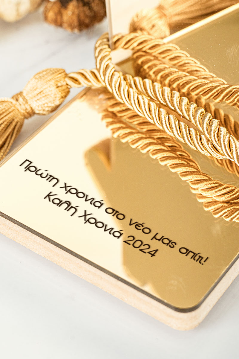 Υλικό: Χρυσός, ακρυλικός καθρέφτης, mdf & χρυσή φούντα.