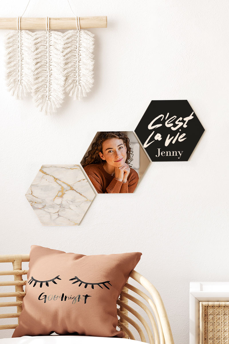 Φτιάξε online σε 1’ τα δικά σου Hex & δώσε ζωή στο χώρο σου! Κόλλησέ τα πανεύκολα στον τοίχο σου με την ειδική τους κόλλα (χωρίς καρφιά & τρύπες). Τα hex είναι εκτυπωμένα σε ξύλο για να ταιριάζουν σε κάθε χώρο!