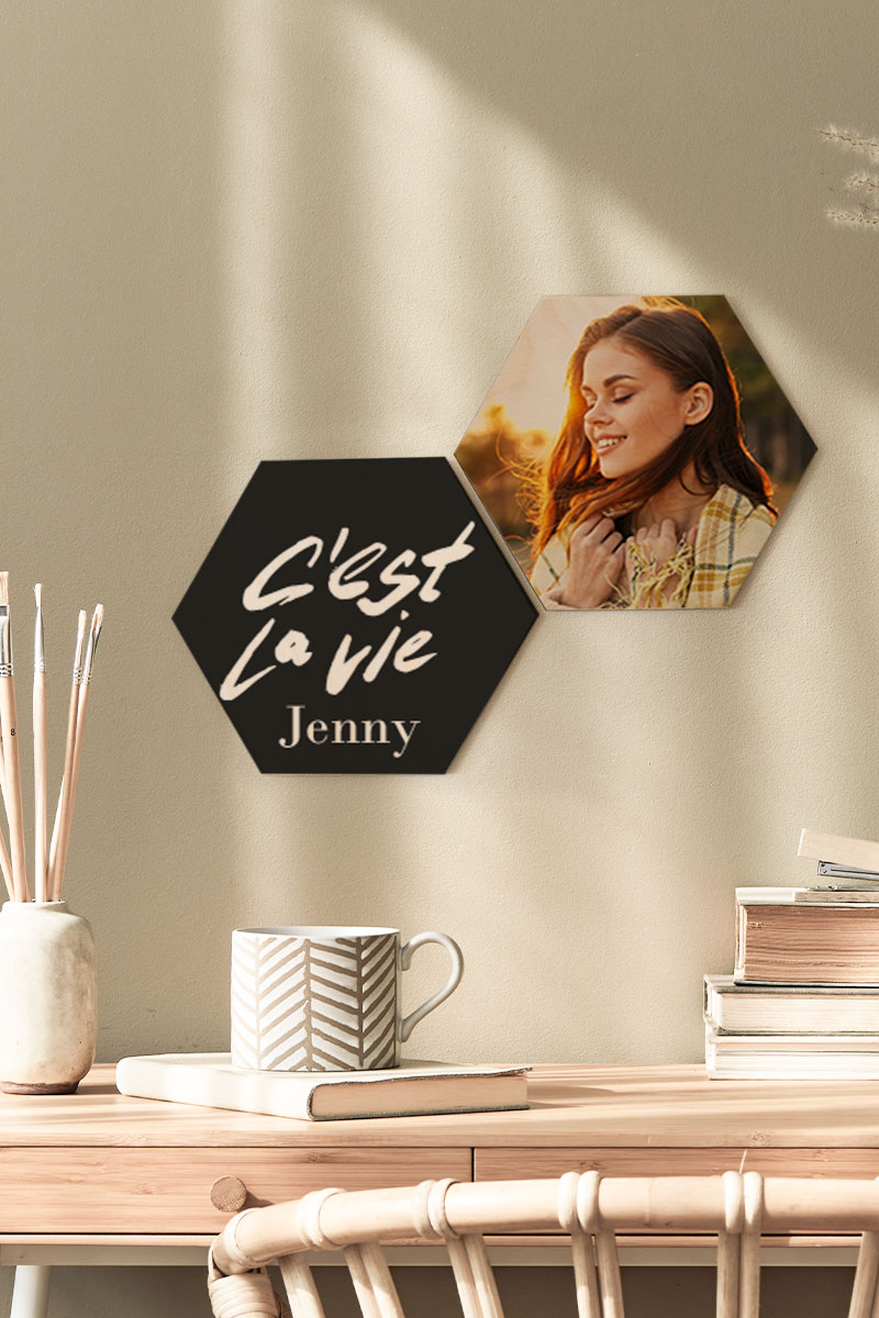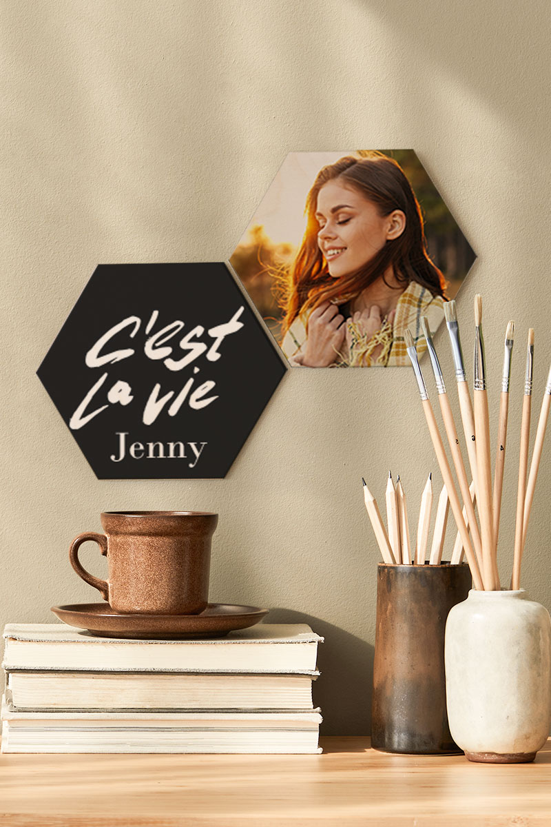 Φτιάξε online σε 1’ τα δικά σου Hex & δώσε ζωή στο χώρο σου! Κόλλησέ τα πανεύκολα στον τοίχο σου με την ειδική τους κόλλα (χωρίς καρφιά & τρύπες). Τα hex είναι εκτυπωμένα σε ξύλο για να ταιριάζουν σε κάθε χώρο!