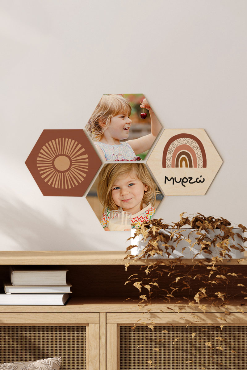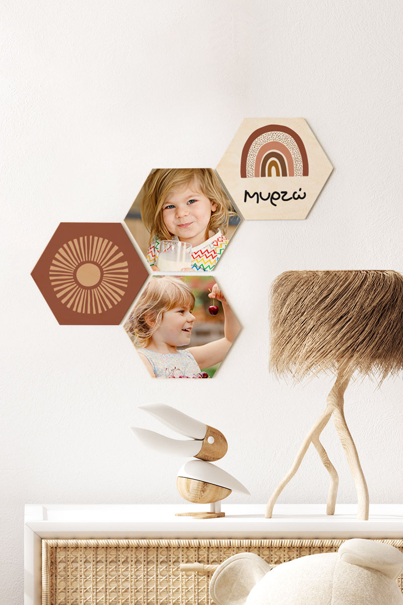 Φτιάξε online σε 1’ τα δικά σου Hex & δώσε ζωή στο χώρο σου! Κόλλησέ τα πανεύκολα στον τοίχο σου με την ειδική τους κόλλα (χωρίς καρφιά & τρύπες). Τα hex είναι εκτυπωμένα σε ξύλο για να ταιριάζουν σε κάθε χώρο!