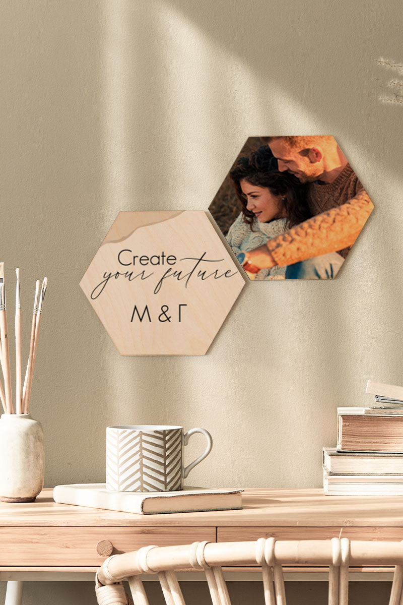 Φτιάξε online σε 1’ τα δικά σου Hex & δώσε ζωή στο χώρο σου! Κόλλησέ τα πανεύκολα στον τοίχο σου με την ειδική τους κόλλα (χωρίς καρφιά & τρύπες). Τα hex είναι εκτυπωμένα σε ξύλο για να ταιριάζουν σε κάθε χώρο!