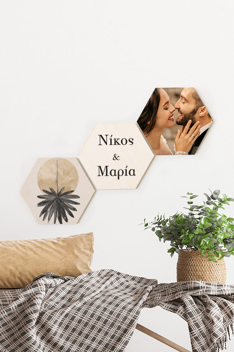 Φτιάξε online σε 1’ τα δικά σου Hex & δώσε ζωή στο χώρο σου! Κόλλησέ τα πανεύκολα στον τοίχο σου με την ειδική τους κόλλα (χωρίς καρφιά & τρύπες). Τα hex είναι εκτυπωμένα σε ξύλο για να ταιριάζουν σε κάθε χώρο!