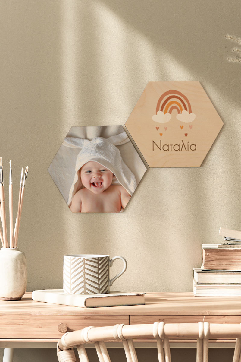 Φτιάξε online σε 1’ τα δικά σου Hex & δώσε ζωή στο χώρο σου! Κόλλησέ τα πανεύκολα στον τοίχο σου με την ειδική τους κόλλα (χωρίς καρφιά & τρύπες). Τα hex είναι εκτυπωμένα σε ξύλο για να ταιριάζουν σε κάθε χώρο!