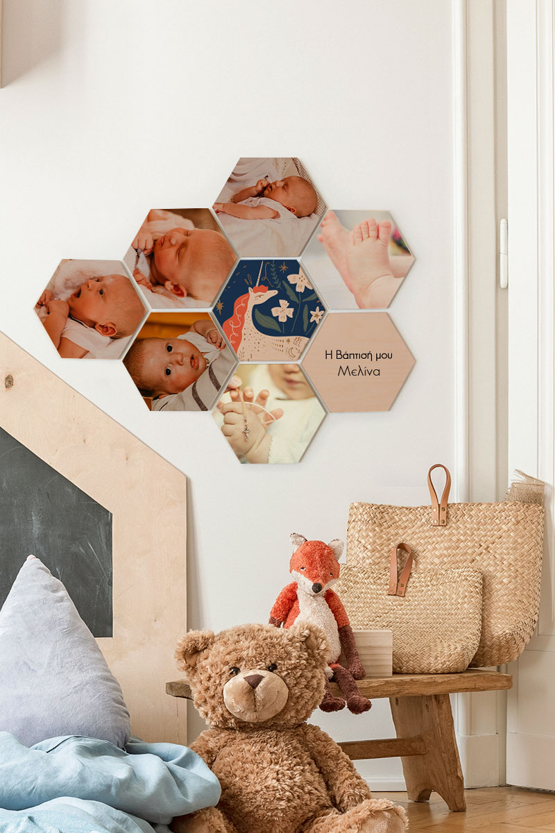Φτιάξε online σε 1’ τα δικά σου Hex & δώσε ζωή στο χώρο σου! Κόλλησέ τα πανεύκολα στον τοίχο σου με την ειδική τους κόλλα (χωρίς καρφιά & τρύπες). Τα hex είναι εκτυπωμένα σε ξύλο για να ταιριάζουν σε κάθε χώρο!