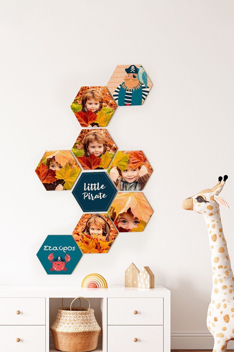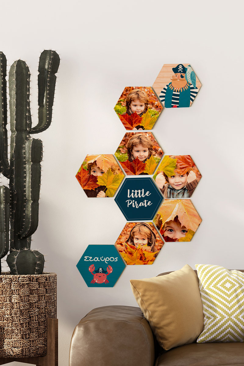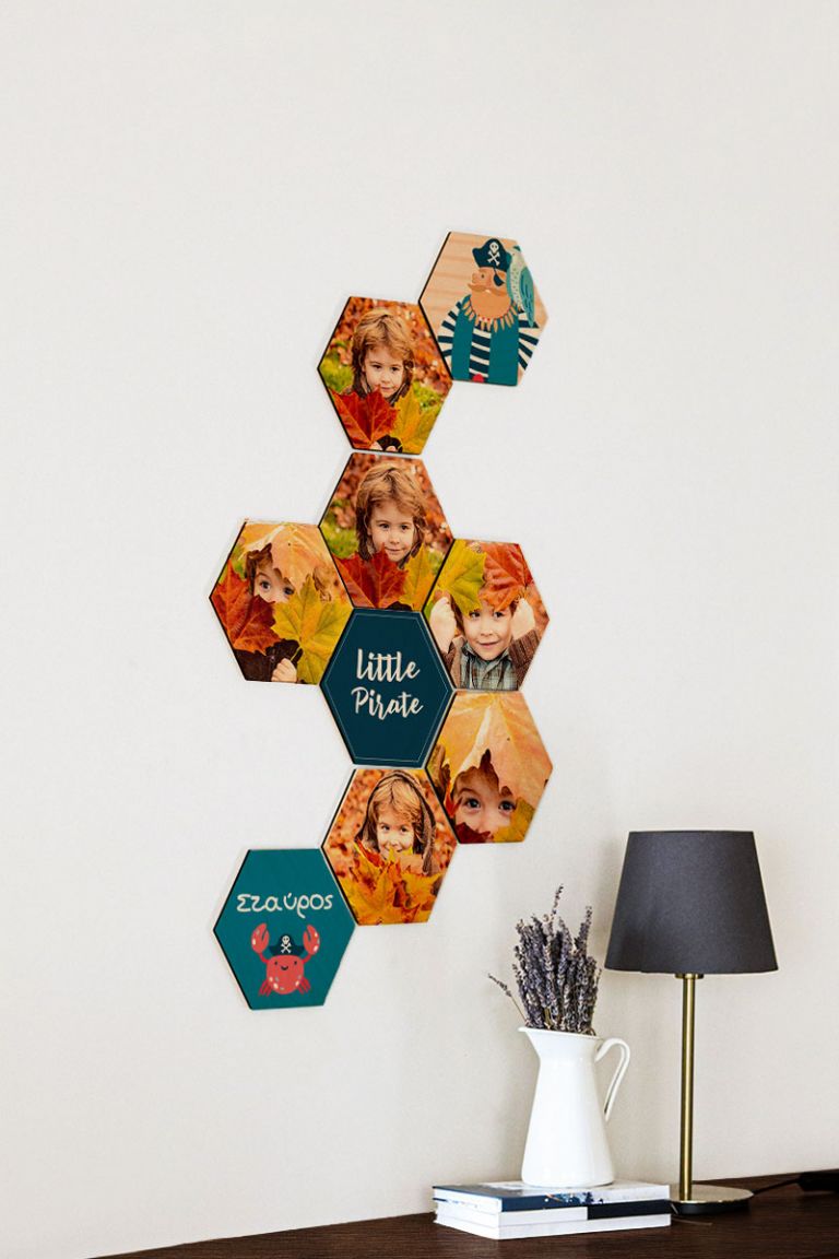 Φτιάξε online σε 1’ τα δικά σου Hex & δώσε ζωή στο χώρο σου! Κόλλησέ τα πανεύκολα στον τοίχο σου με την ειδική τους κόλλα (χωρίς καρφιά & τρύπες). Τα hex είναι εκτυπωμένα σε ξύλο για να ταιριάζουν σε κάθε χώρο!