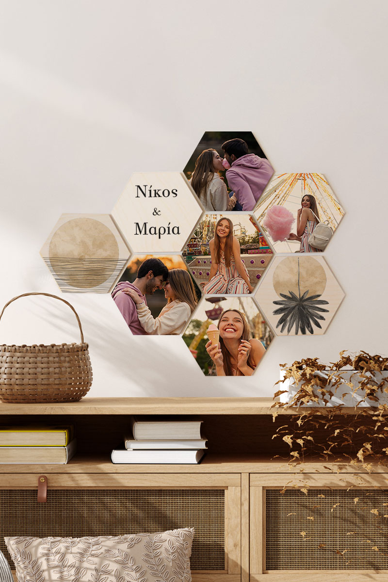 Φτιάξε online σε 1’ τα δικά σου Hex & δώσε ζωή στο χώρο σου! Κόλλησέ τα πανεύκολα στον τοίχο σου με την ειδική τους κόλλα (χωρίς καρφιά & τρύπες). Τα hex είναι εκτυπωμένα σε ξύλο για να ταιριάζουν σε κάθε χώρο!