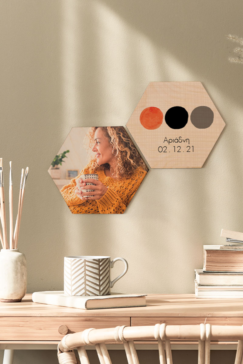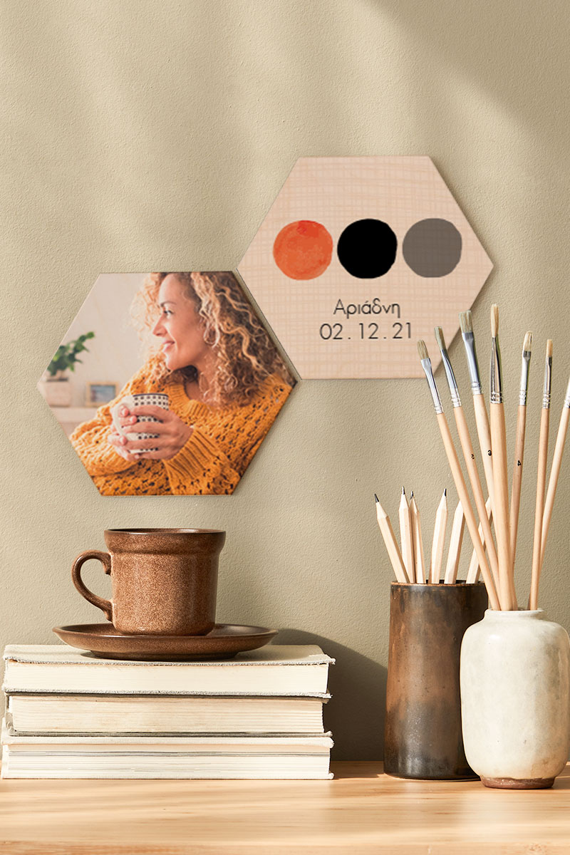 Φτιάξε online σε 1’ τα δικά σου Hex & δώσε ζωή στο χώρο σου! Κόλλησέ τα πανεύκολα στον τοίχο σου με την ειδική τους κόλλα (χωρίς καρφιά & τρύπες). Τα hex είναι εκτυπωμένα σε ξύλο για να ταιριάζουν σε κάθε χώρο!