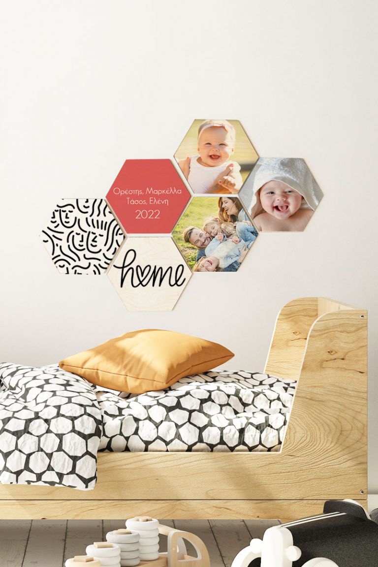 Φτιάξε online σε 1’ τα δικά σου Hex & δώσε ζωή στο χώρο σου! Κόλλησέ τα πανεύκολα στον τοίχο σου με την ειδική τους κόλλα (χωρίς καρφιά & τρύπες). Τα hex είναι εκτυπωμένα σε ξύλο για να ταιριάζουν σε κάθε χώρο!