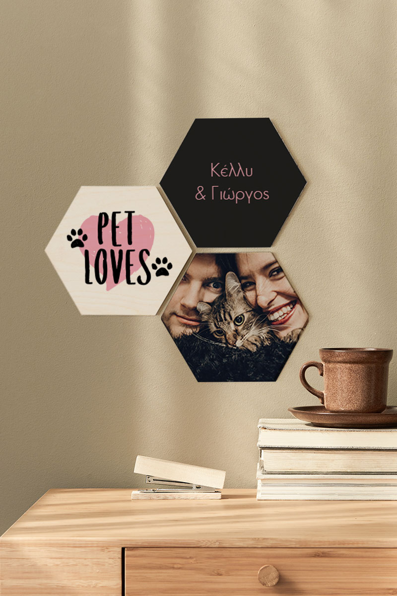 Φτιάξε online σε 1’ τα δικά σου Hex & δώσε ζωή στο χώρο σου! Κόλλησέ τα πανεύκολα στον τοίχο σου με την ειδική τους κόλλα (χωρίς καρφιά & τρύπες). Τα hex είναι εκτυπωμένα σε ξύλο για να ταιριάζουν σε κάθε χώρο!