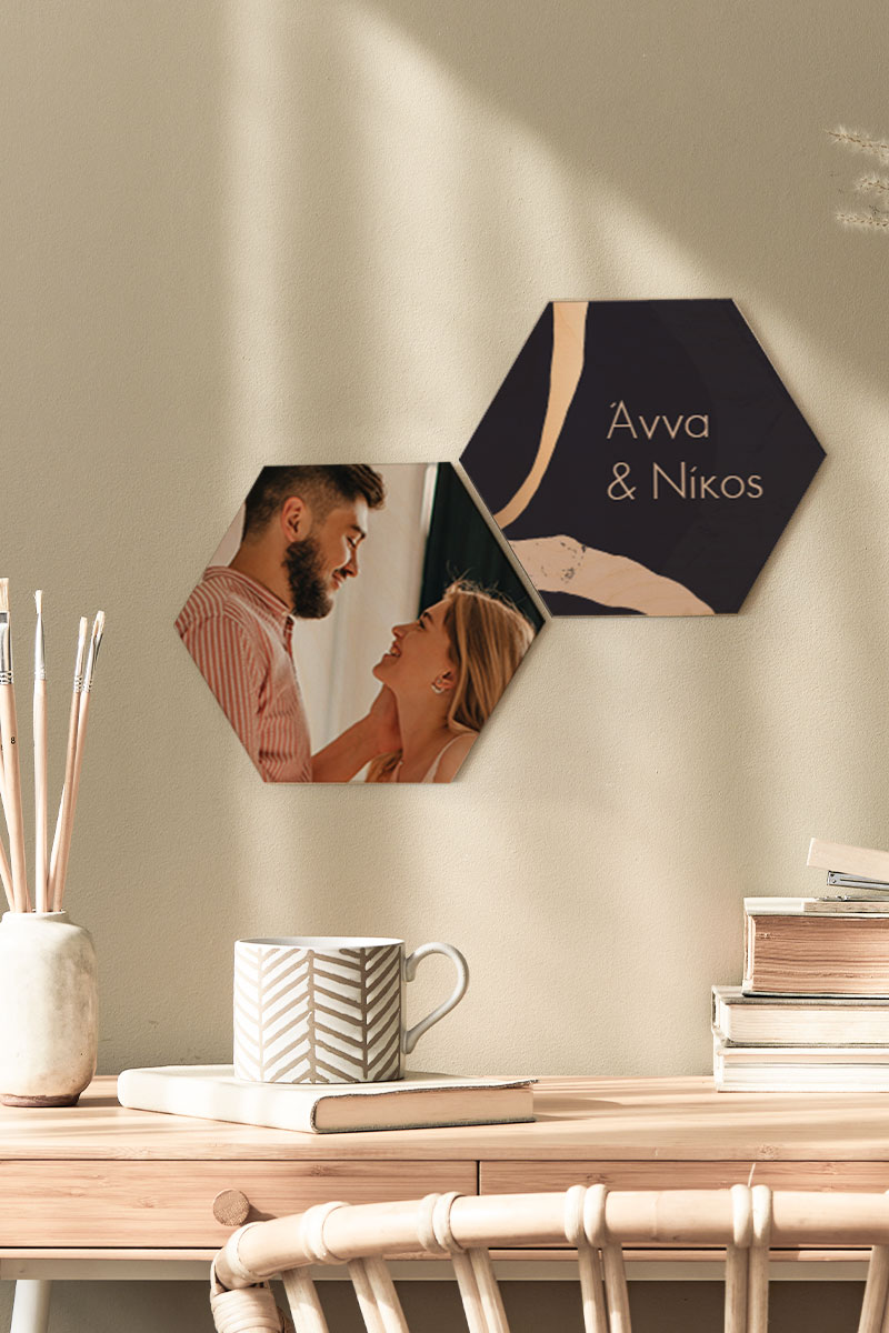 Φτιάξε online σε 1’ τα δικά σου Hex & δώσε ζωή στο χώρο σου! Κόλλησέ τα πανεύκολα στον τοίχο σου με την ειδική τους κόλλα (χωρίς καρφιά & τρύπες). Τα hex είναι εκτυπωμένα σε ξύλο για να ταιριάζουν σε κάθε χώρο!