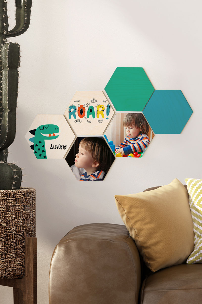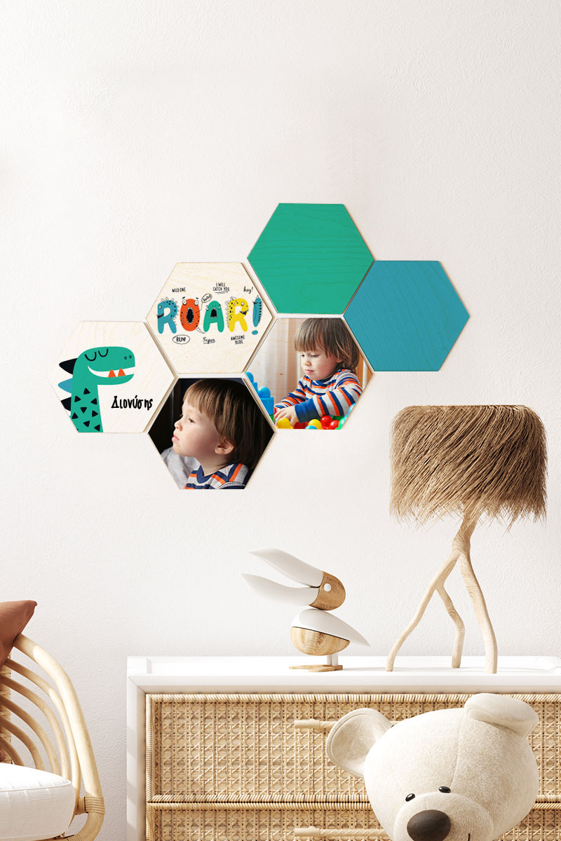 Φτιάξε online σε 1’ τα δικά σου Hex & δώσε ζωή στο χώρο σου! Κόλλησέ τα πανεύκολα στον τοίχο σου με την ειδική τους κόλλα (χωρίς καρφιά & τρύπες). Τα hex είναι εκτυπωμένα σε ξύλο για να ταιριάζουν σε κάθε χώρο!